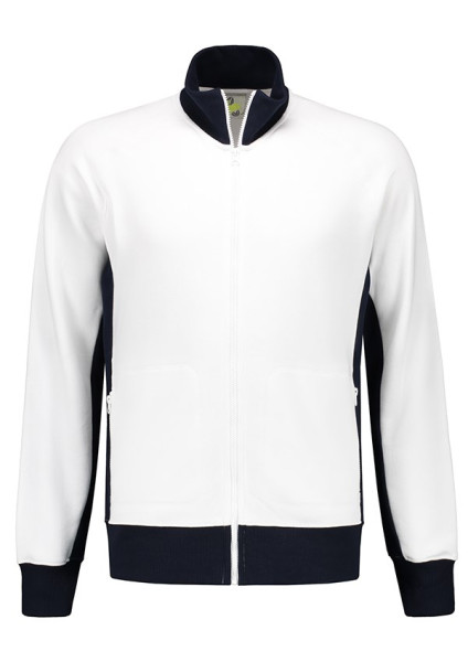 Lemon & Soda Workwear Contrast Cardigan met flatlock sierstiksels langs de raglanmouwen en zijzakken. De zijzakken zijn voorzien van een rits. Kraag en boorden met elastaan. Onderdeel van de Contrastlijn met zes stijlen, acht maten en tien kleurcombinaties. Combintatietip: Met het uni T-shirt LEM4501 heeft u een uitstekende combinatie!