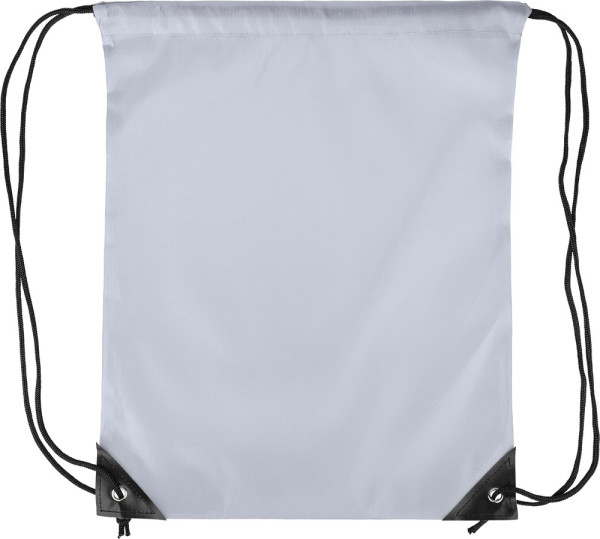 Polyester (210D) trekkoord rugtas met twee verstevigde PU-hoeken aan de voorkant en interne stiksels. Voorzien van een zwarte nylon koord aan elke zijde, een trekkoordsluiting. Capaciteit: 5 L. Draagvermogen: 7 kg.