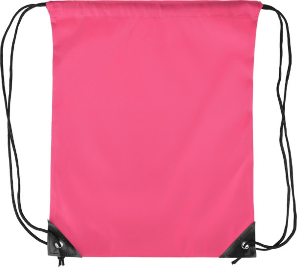 Polyester (210D) trekkoord rugtas met twee verstevigde PU-hoeken aan de voorkant en interne stiksels. Voorzien van een zwarte nylon koord aan elke zijde, een trekkoordsluiting. Capaciteit: 5 L. Draagvermogen: 7 kg.