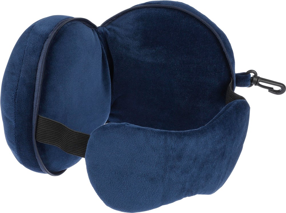 Polyester reiskussenset met zacht polyester en PP-katoenvulling. Inclusief een slaapmasker en verandert in een kussen wanneer opengevouwen. Voorzien van een PP-karabijnhaak voor eenvoudige bevestiging tijdens het reizen.