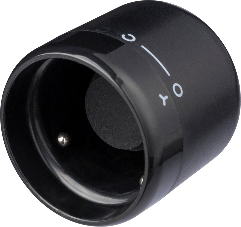 ABS flesstopper met een draai-sluitmechanisme. Per stuk verpakt in een bruine kartonnen doos.