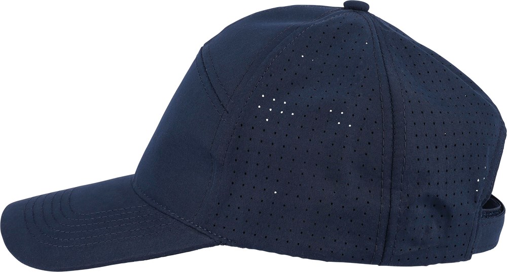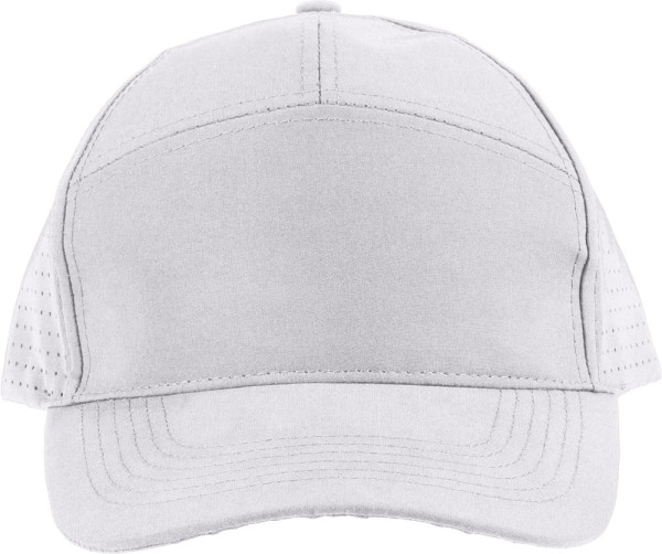 Polyester pet met lasergeperforeerde ventilatiegaten op de achterpanelen. Voorzien van een 7-paneldesign met één paneel aan de voorkant en een 7 cm klep. Verstelbaar en ademend, zonder PU-label.