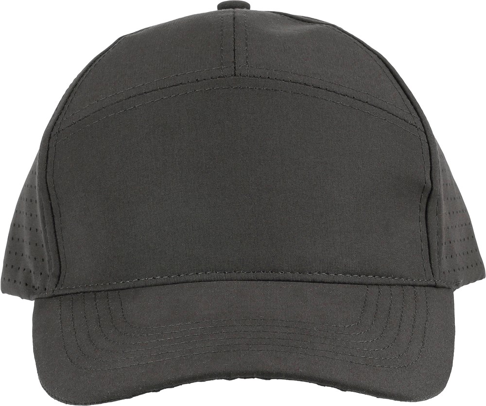 Polyester pet met lasergeperforeerde ventilatiegaten op de achterpanelen. Voorzien van een 7-paneldesign met één paneel aan de voorkant en een 7 cm klep. Verstelbaar en ademend, zonder PU-label.