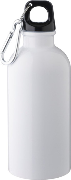 Gerecyclede roestvrijstalen (s/s304) enkelwandige fles met een capaciteit van 400 ml, een PP-dop en een zilverkleurige aluminium karabijnhaak. Voorzien van een gegraveerd gerecycled logo op de voorkant.