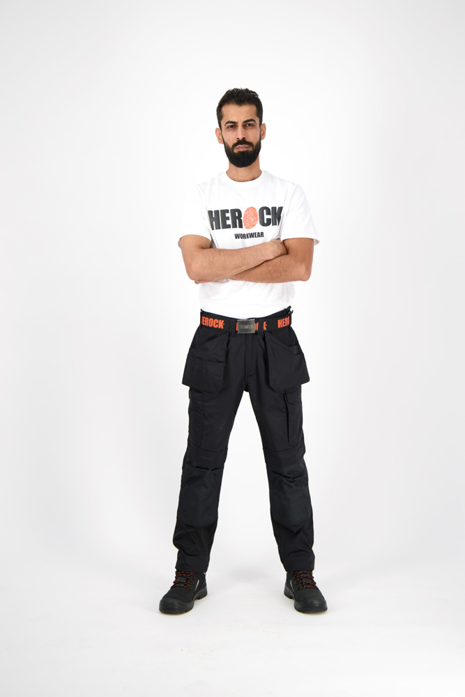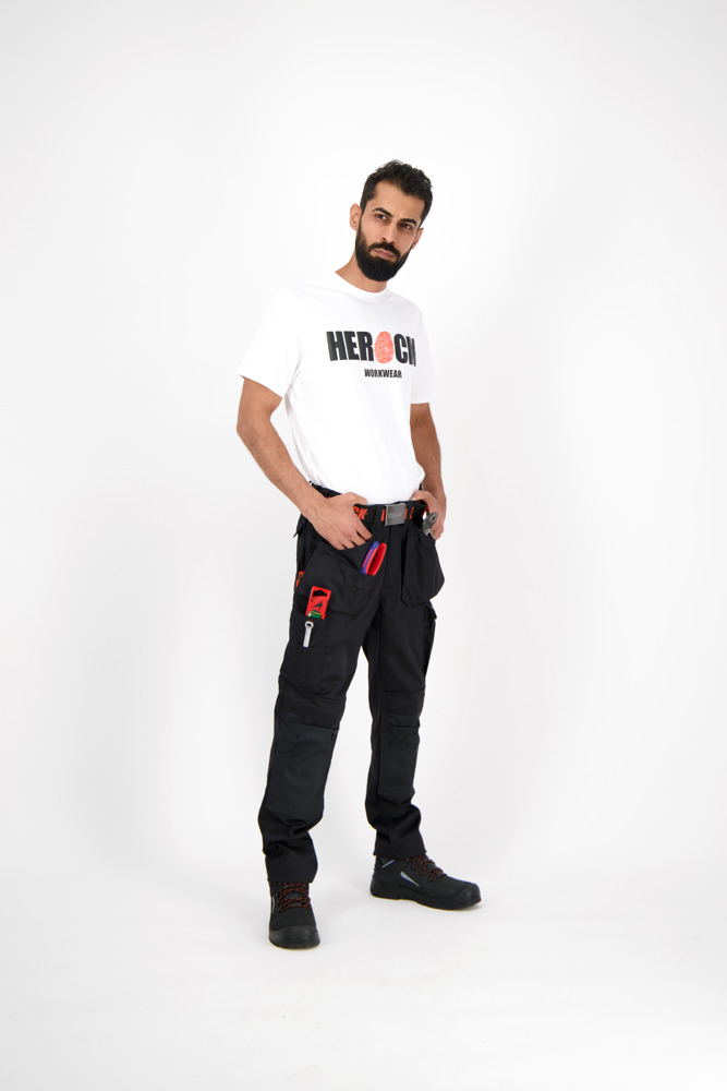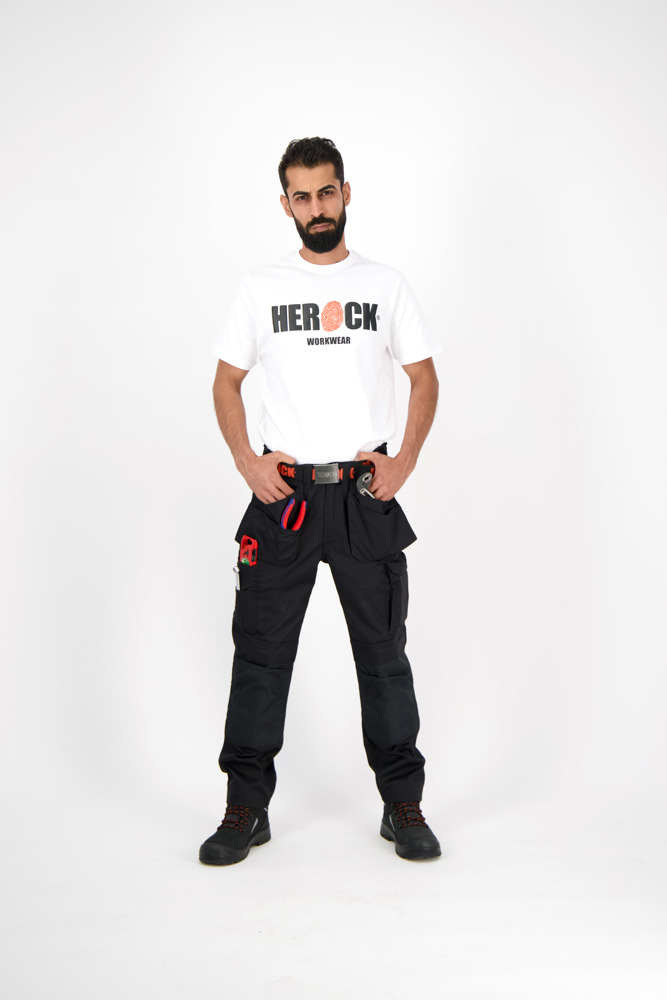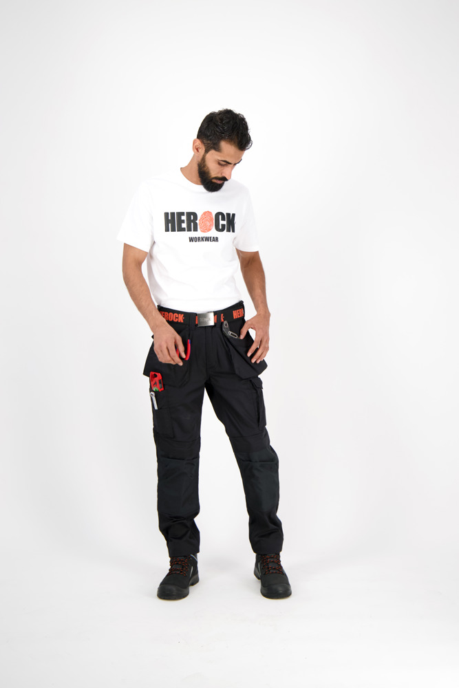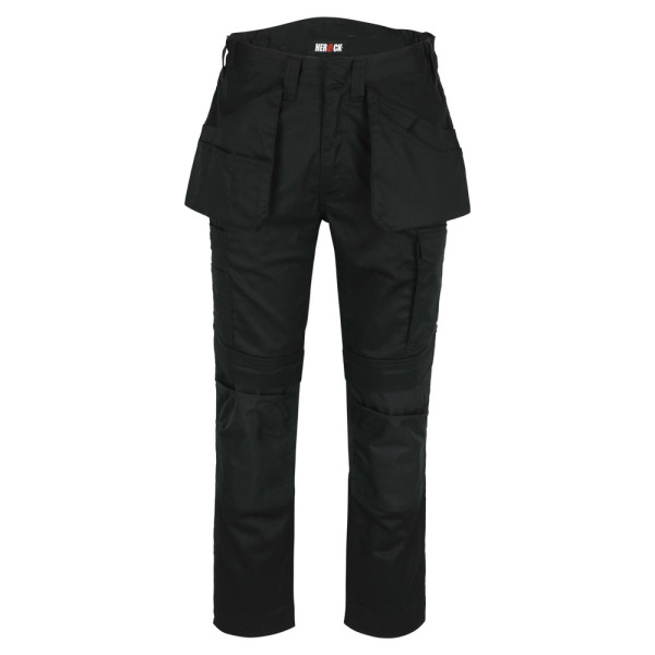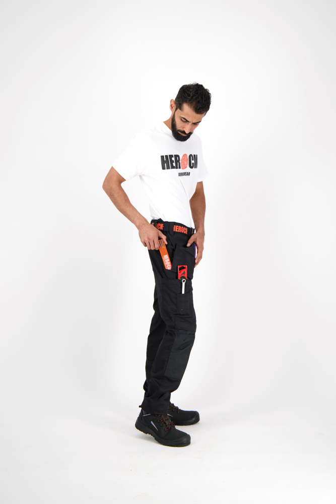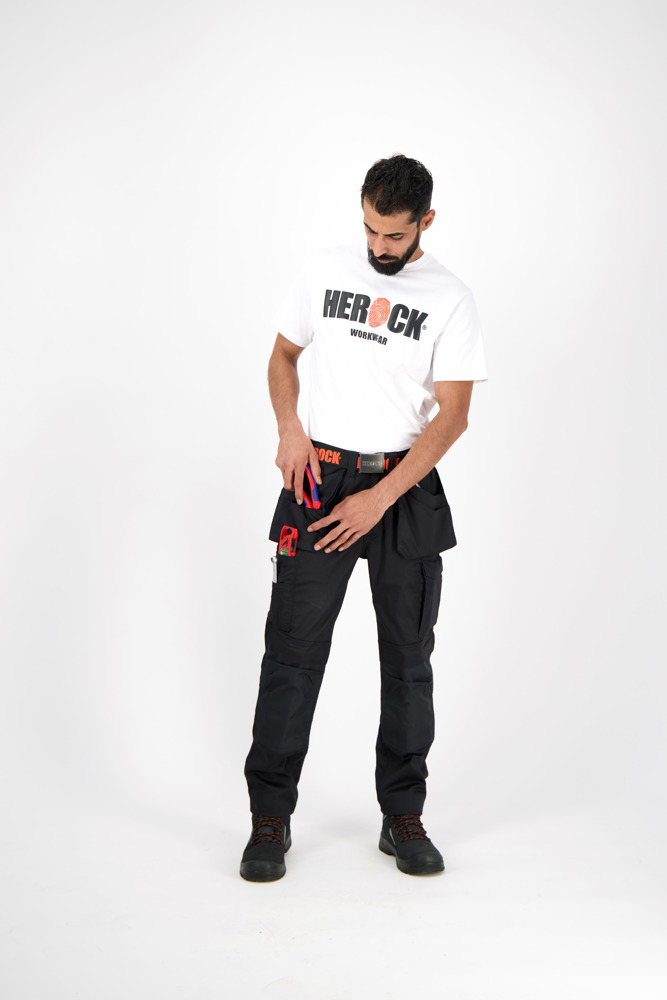 Multi-pocket waterafstotende broek Elastische tailleband Verborgen knop Verhoogde tailleband achteraan 2 zijzakken 1 extra zijzak met rits 2 dijbeenzakken 1 GSM-zakje in de dijbeenzak links 1 meterzak 2 pennenzakjes 2 achterzakken Versterkte kniezakken Uitneembare zoom Waterafstotende coating EN ISO 13688:2013 EN ISO 15797:2004/AC:2004 EN ISO 14404:2004+A1:2010 Type 2 Level 0 in combinatie met HEROCK® kniebeschermers 21MI0901