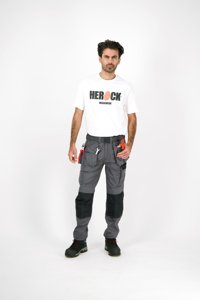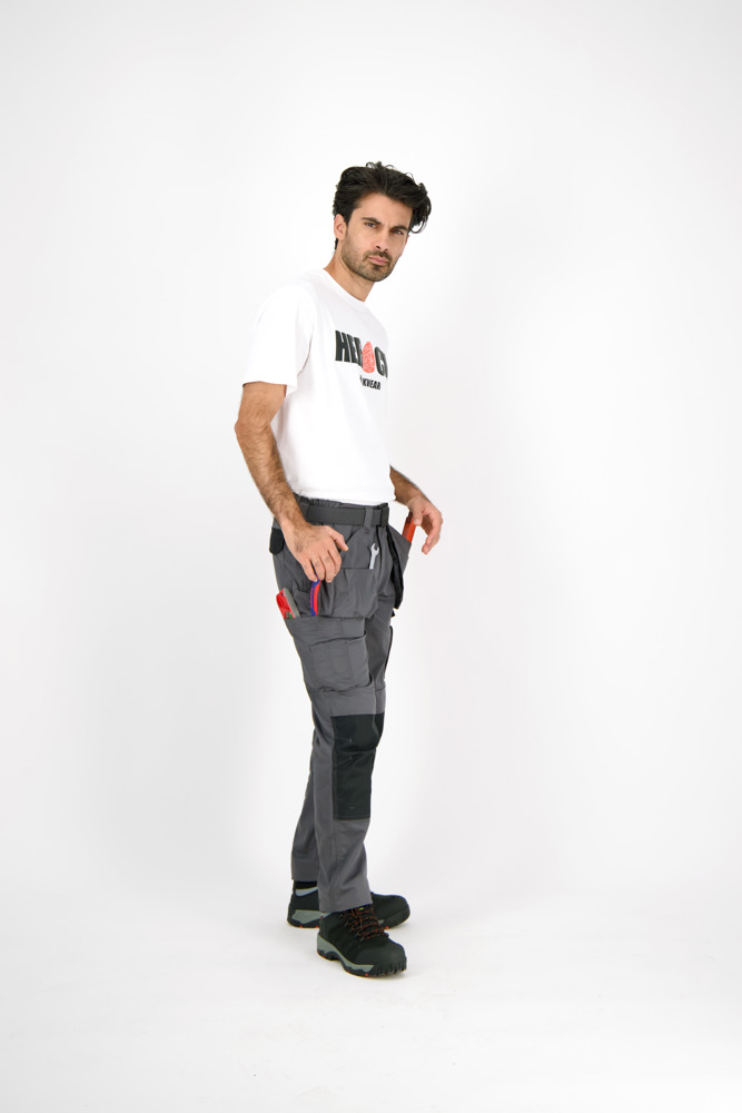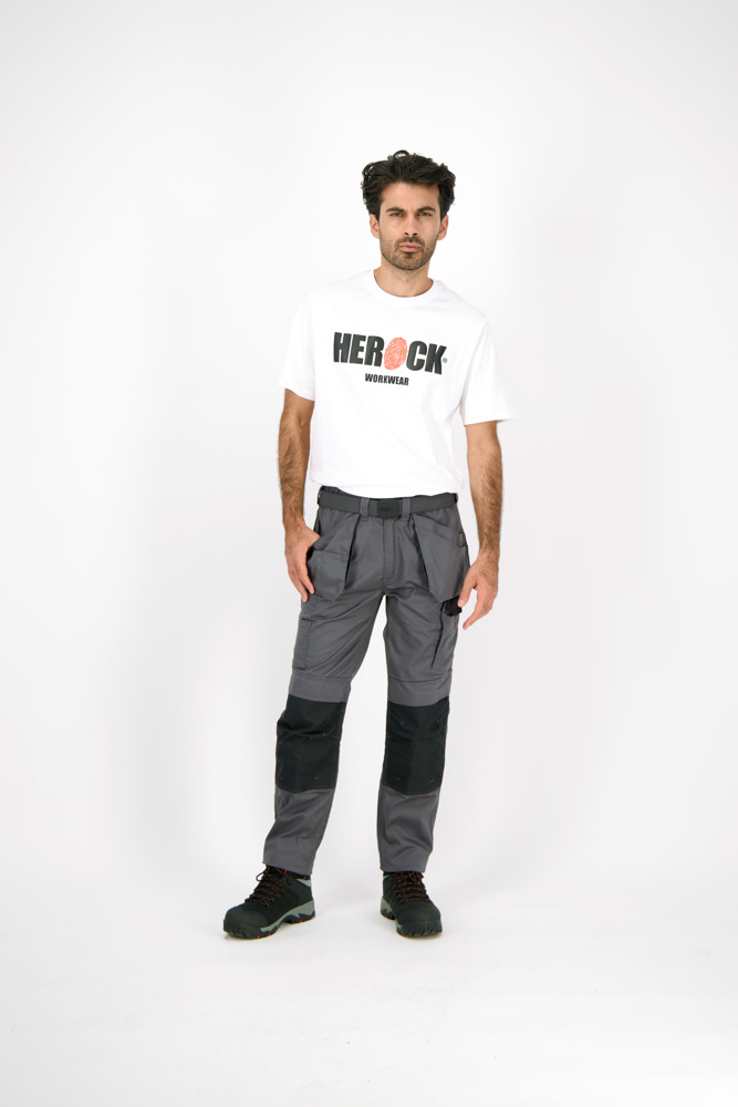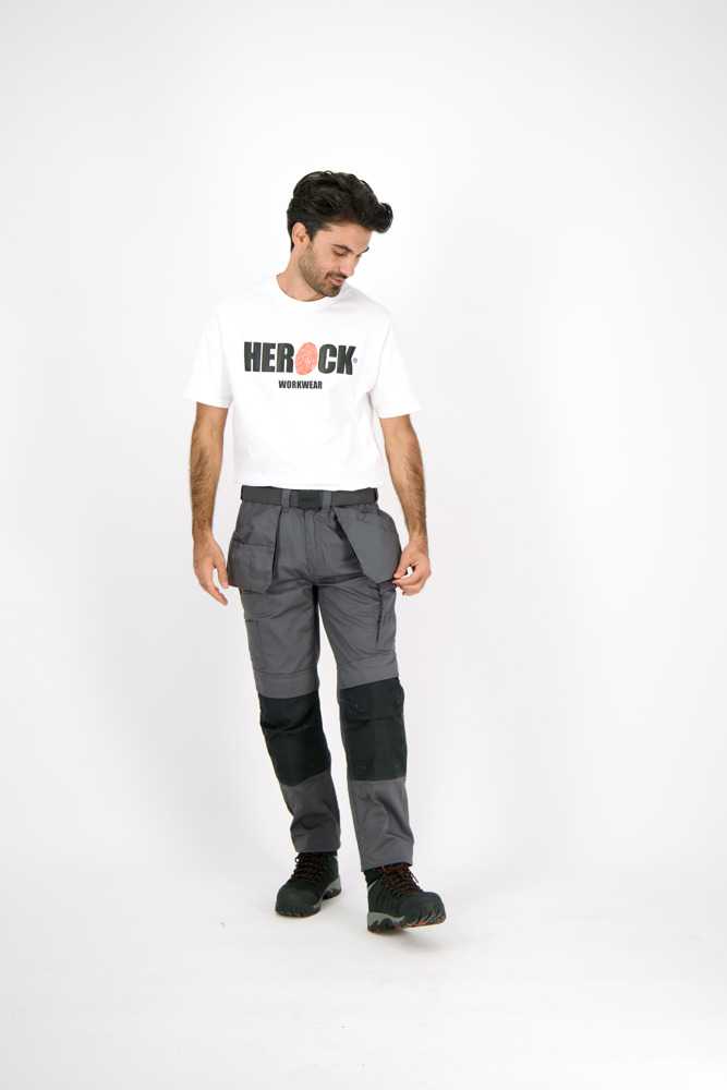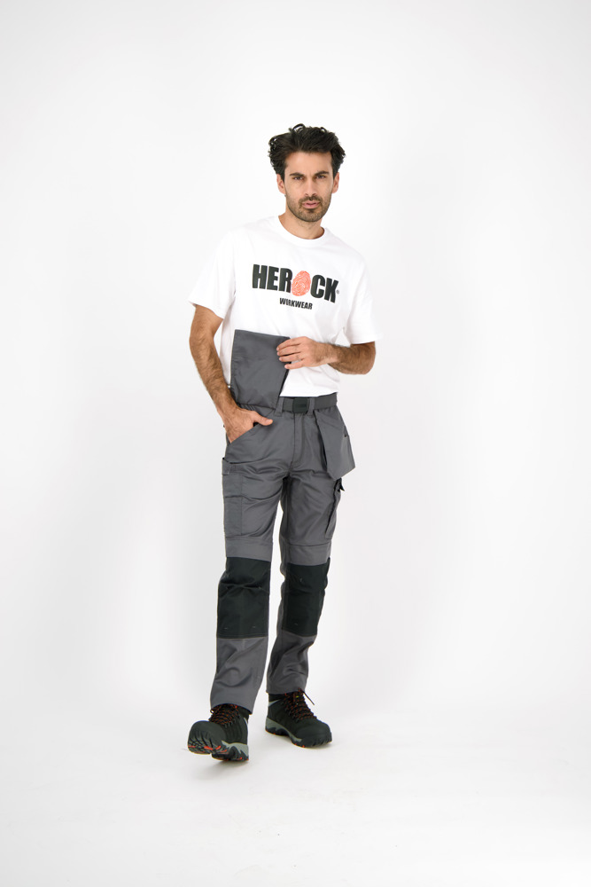 Multi-pocket waterafstotende broek Elastische tailleband Verborgen knop Verhoogde tailleband achteraan 2 zijzakken 1 extra zijzak met rits 2 dijbeenzakken 1 GSM-zakje in de dijbeenzak links 1 meterzak 2 pennenzakjes 2 achterzakken Versterkte kniezakken Uitneembare zoom Waterafstotende coating EN ISO 13688:2013 EN ISO 15797:2004/AC:2004 EN ISO 14404:2004+A1:2010 Type 2 Level 0 in combinatie met HEROCK® kniebeschermers 21MI0901