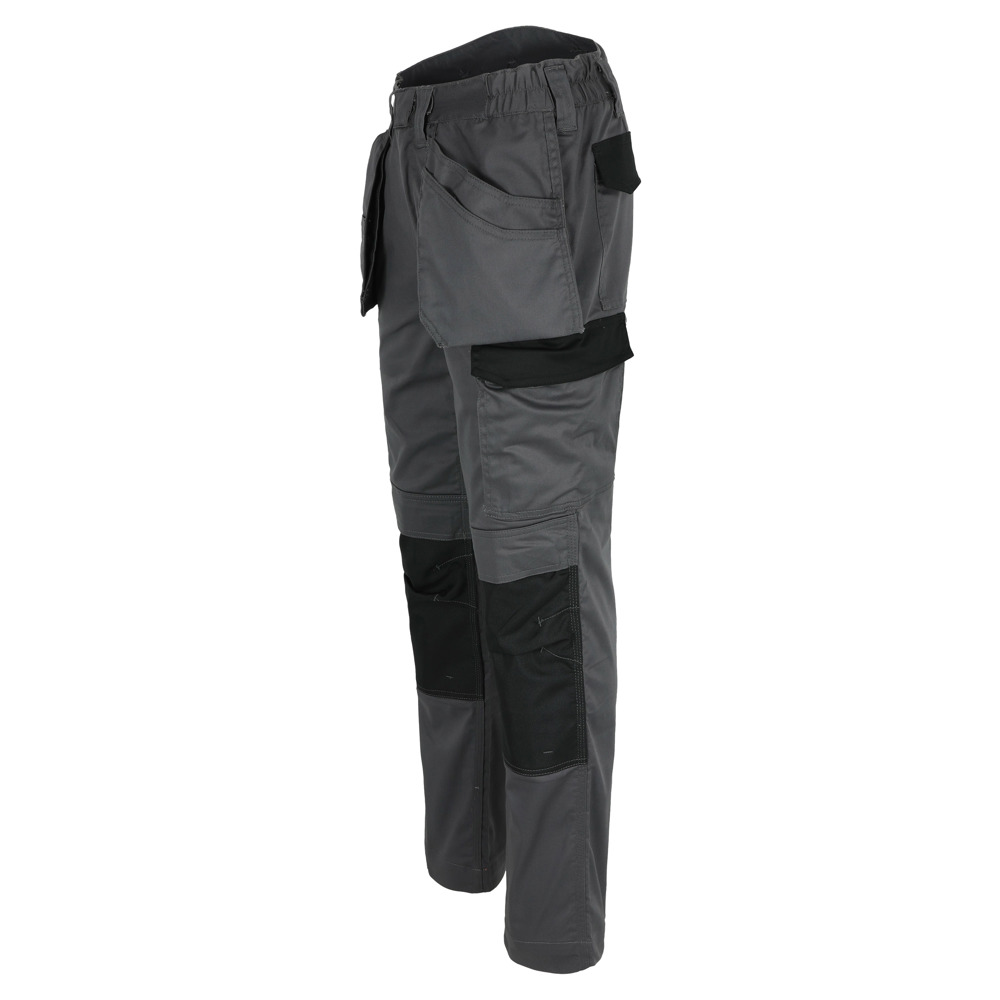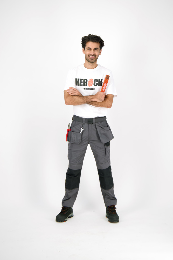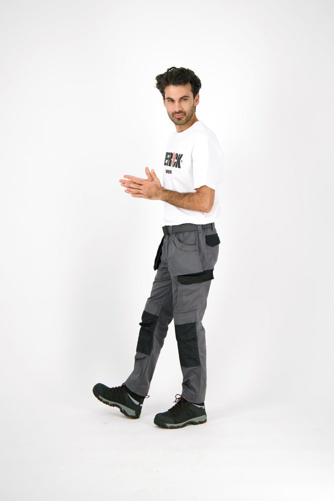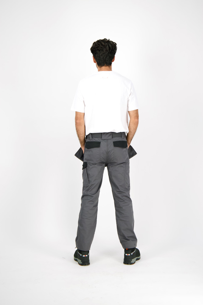 Multi-pocket waterafstotende broek Elastische tailleband Verborgen knop Verhoogde tailleband achteraan 2 zijzakken 1 extra zijzak met rits 2 dijbeenzakken 1 GSM-zakje in de dijbeenzak links 1 meterzak 2 pennenzakjes 2 achterzakken Versterkte kniezakken Uitneembare zoom Waterafstotende coating EN ISO 13688:2013 EN ISO 15797:2004/AC:2004 EN ISO 14404:2004+A1:2010 Type 2 Level 0 in combinatie met HEROCK® kniebeschermers 21MI0901