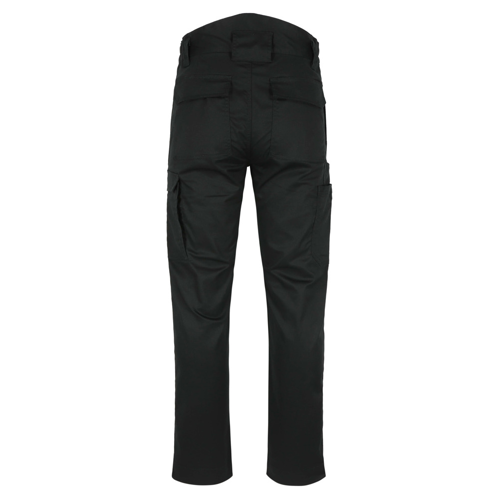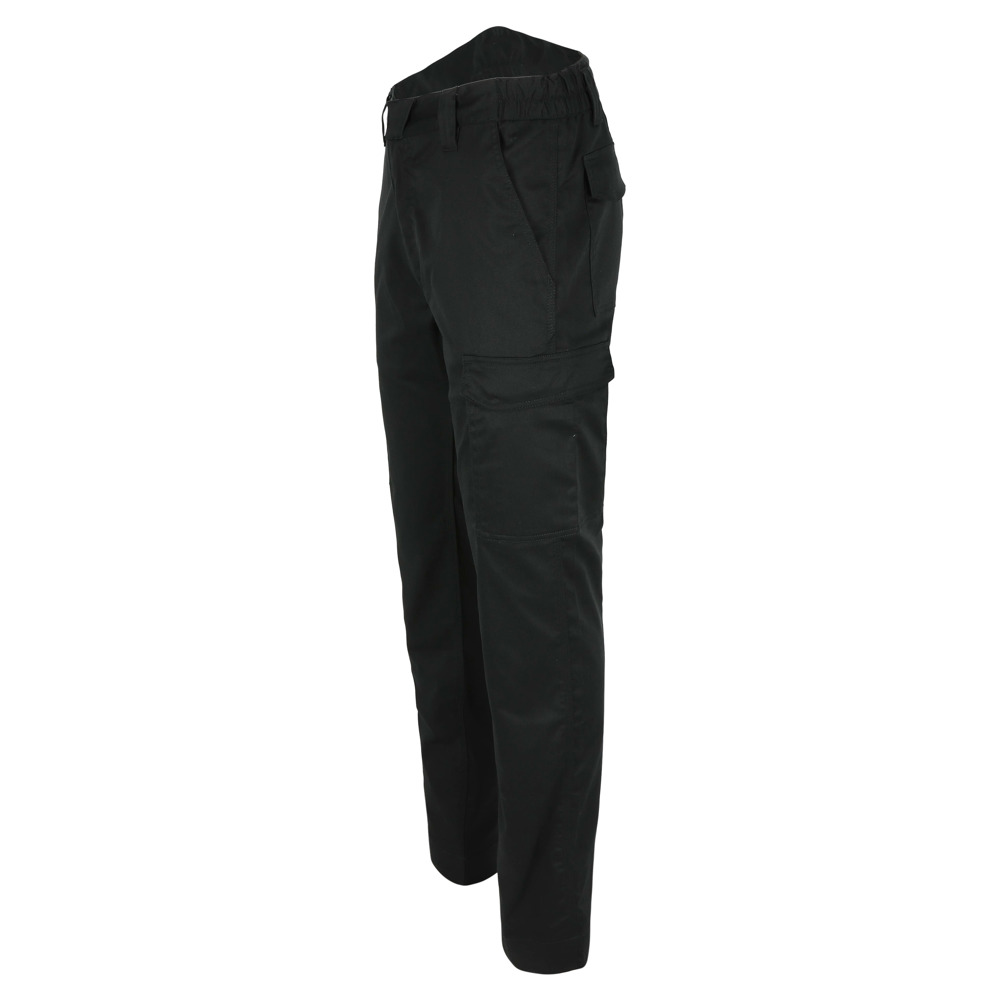 Multi-pocket slim fit broek in 2-weegs stretch Waterafstotende coating Elastische tailleband Verborgen knop Verhoogde tailleband achteraan 2 zijzakken 1 extra zijzak met rits 1 grote GSM-zak in de dijbeenzak links 1 dijbeenzak met pennenzakjes 1 meterzak 2 achterzakken Uitneembare zoom (5cm) EN ISO 13688:2013 EN ISO 15797:2004/AC:2004