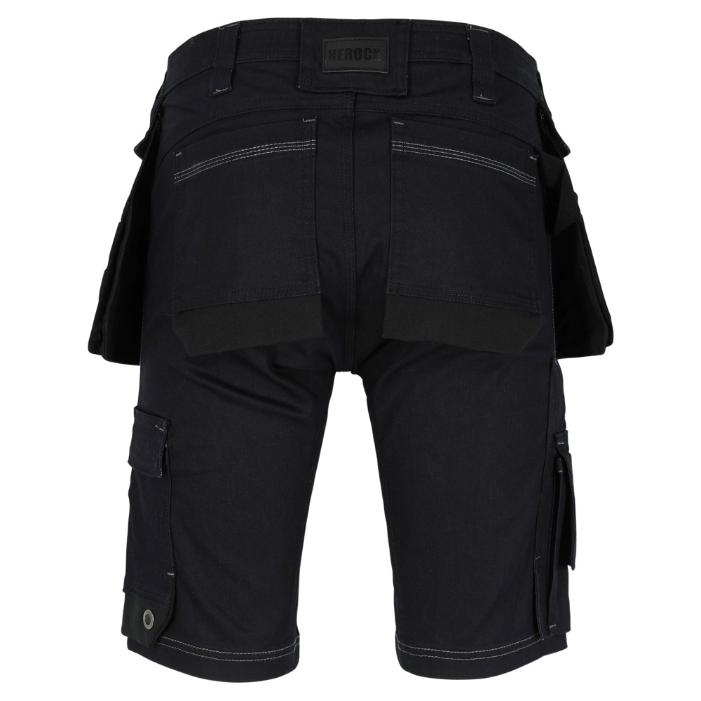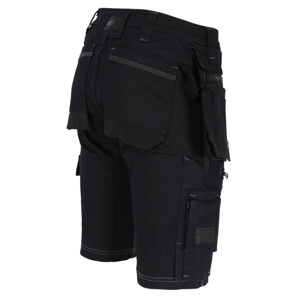 Stretch jeans bermuda slim fit Multi-pocket Comfortabele tailleband met elastiek binnenin Taillelus met sleutelring Dijbeenzak versterkt met Cordura® Meterzak met GSM-zakje Klein zakje met rits Afneembare en verwisselbare nagelzakken, versterkt met Cordura® Achterzakken, versterkt met Cordura® EN ISO 13688:2013