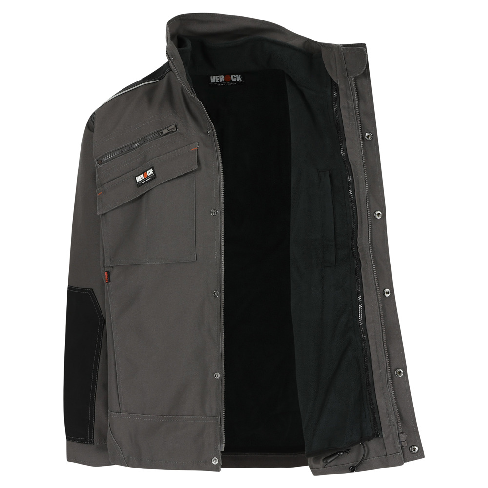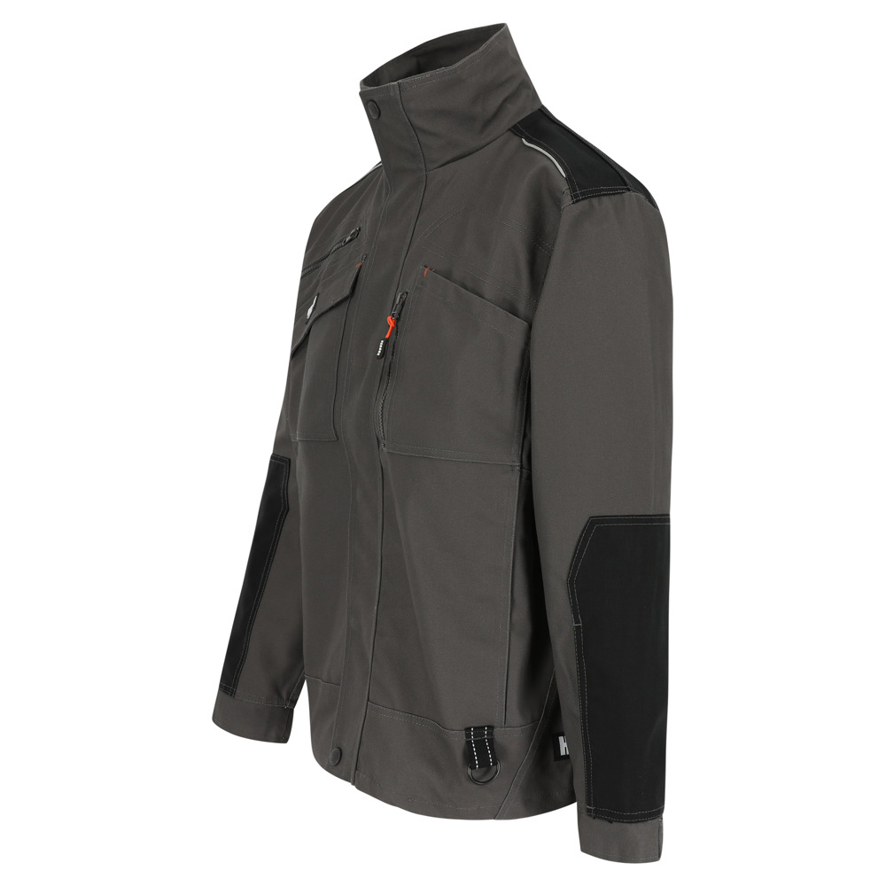 Multi-pocket ademende en waterdichte jas met uitneembare ademende en winddichte bodywarmer Buitenkant jas: Ademend 3000 mvp Waterdicht 8000 mm Getapete naden Versterkingen op schouders en armen met reflecterende piping 4 borstzakken 2 zijzakken 1 taillelus met sleutelring 2 binnenzakken Verstelbare manchetten Elastisch trekkoord onderaan Uitneembare winddichte bodywarmer: Ademend 2000 mvp 1 borstzak 2 zijzakken EN ISO 15797:2004/AC:2004