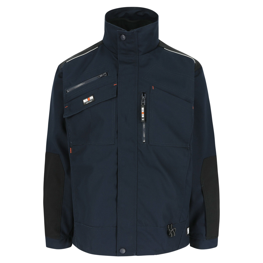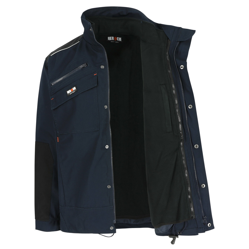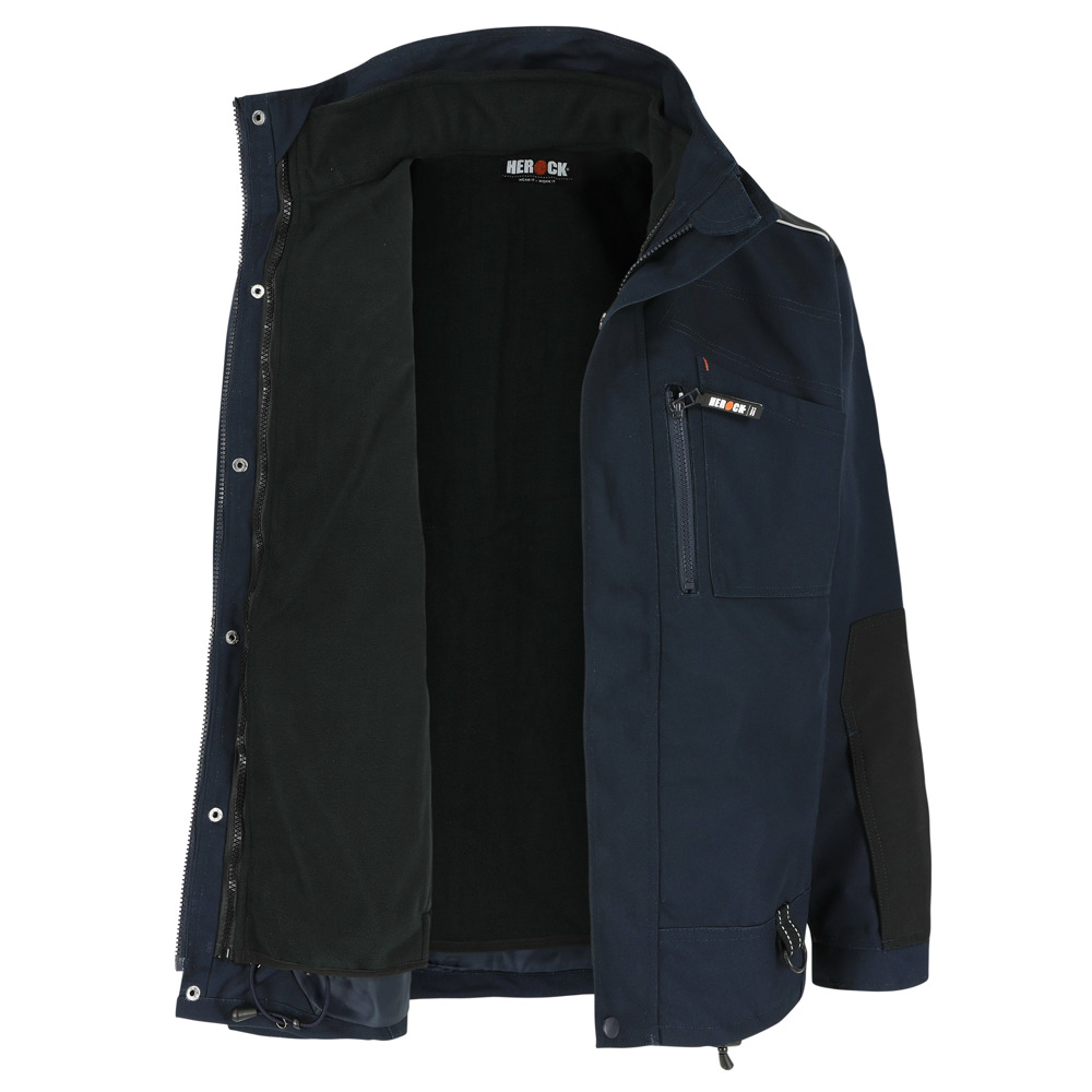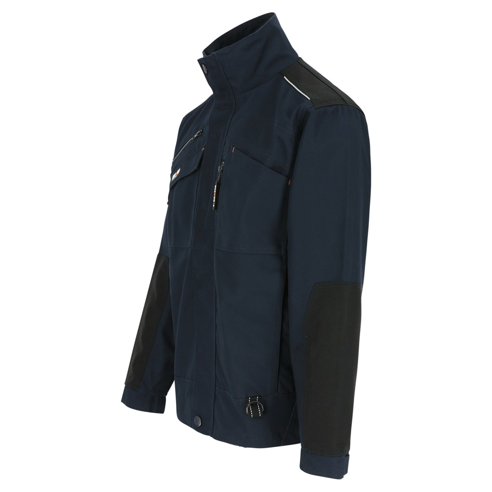Multi-pocket ademende en waterdichte jas met uitneembare ademende en winddichte bodywarmer Buitenkant jas: Ademend 3000 mvp Waterdicht 8000 mm Getapete naden Versterkingen op schouders en armen met reflecterende piping 4 borstzakken 2 zijzakken 1 taillelus met sleutelring 2 binnenzakken Verstelbare manchetten Elastisch trekkoord onderaan Uitneembare winddichte bodywarmer: Ademend 2000 mvp 1 borstzak 2 zijzakken EN ISO 15797:2004/AC:2004