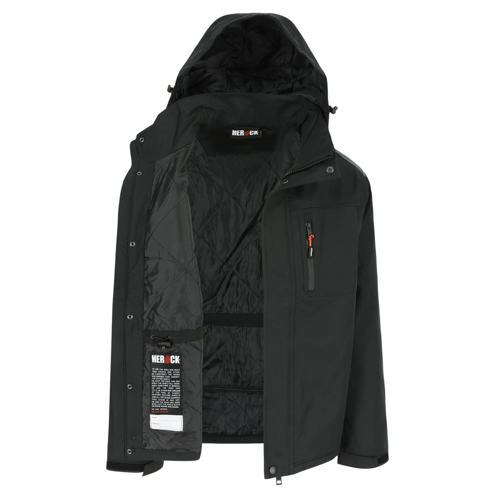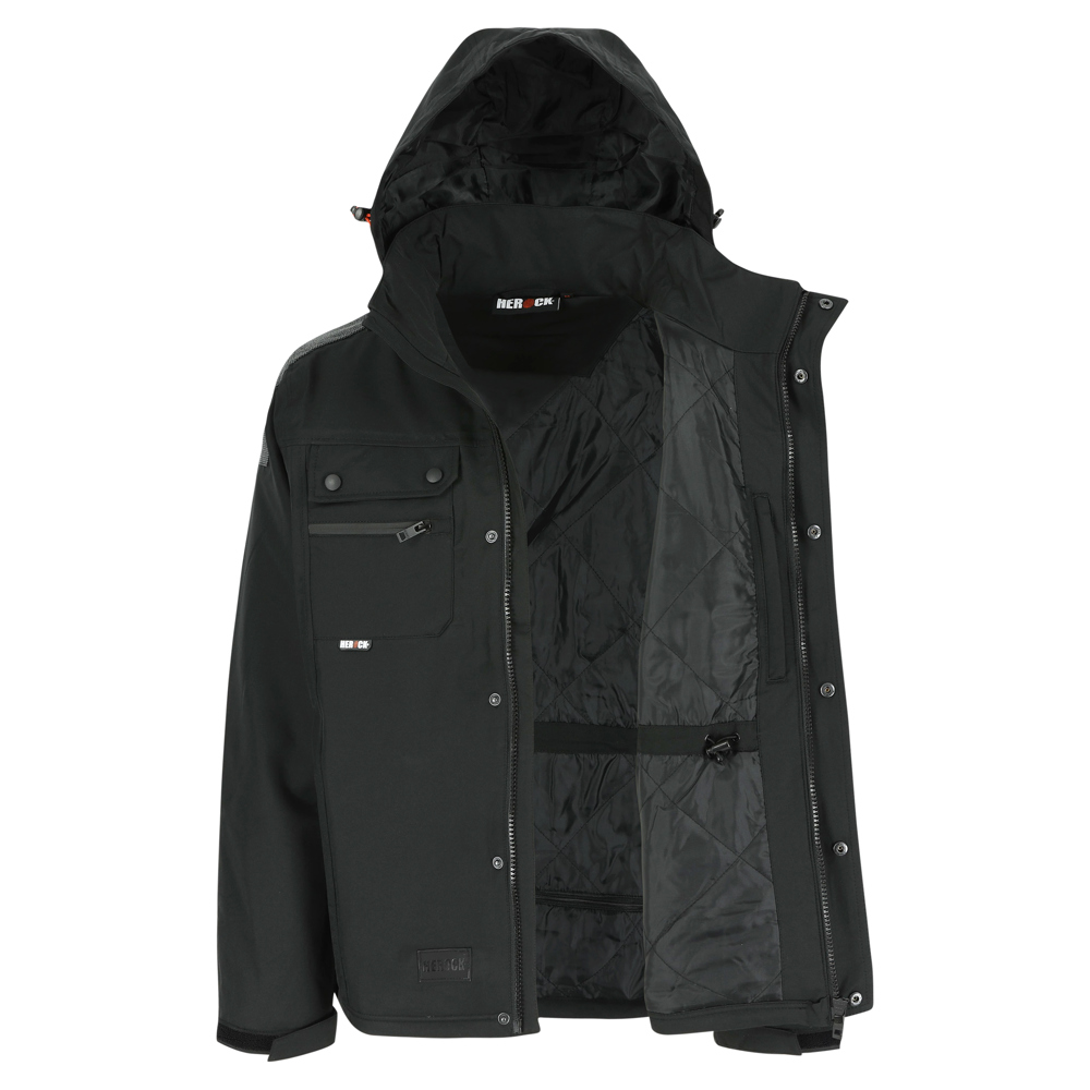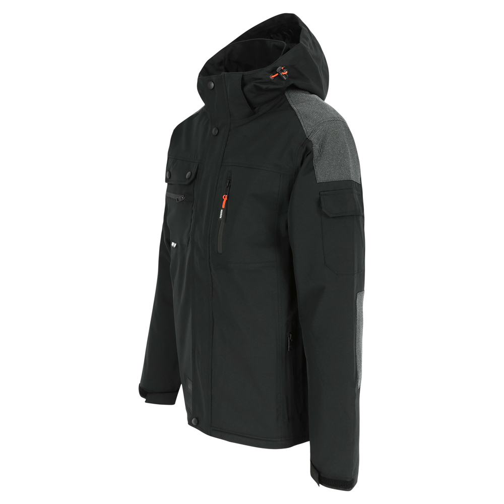 Multi-pocket ademende en waterdichte jas Ademend 3000 mvp Waterdicht 8000 mm Getapete naden Versterkte schouders en ellebogen 2 borstzakken en extra zakje 2 zijzakken 1 mouwzak Verstelbare kap, manchetten en onderkant Printerrits Verwijderbare ritskoordjes EN ISO 13688:2013 EN 343:2003+A1:2007 klasse 3/1