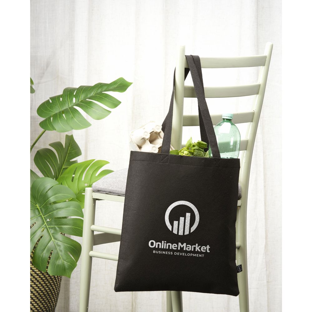 Stoere shopper van RPET kwaliteitsvilt Met lange, geweven, katoenen hengsels. GRS-gecertificeerd....meer