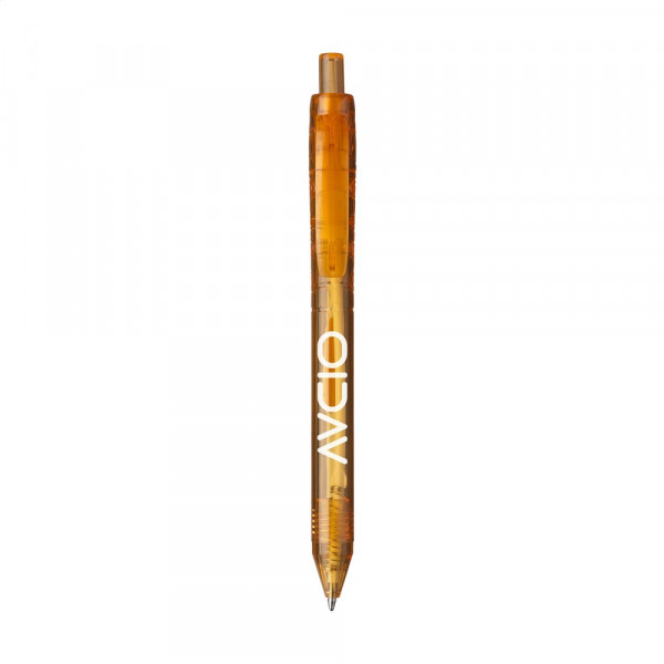 Blauwschrijvende balpen met transparante houder van 100% gerecycled PET uit gerecyclede PET-flessen. GRS-gecertificeerd.