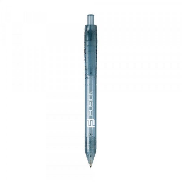 Blauwschrijvende balpen met transparante houder van 100% gerecycled PET uit gerecyclede PET-flessen. GRS-gecertificeerd.