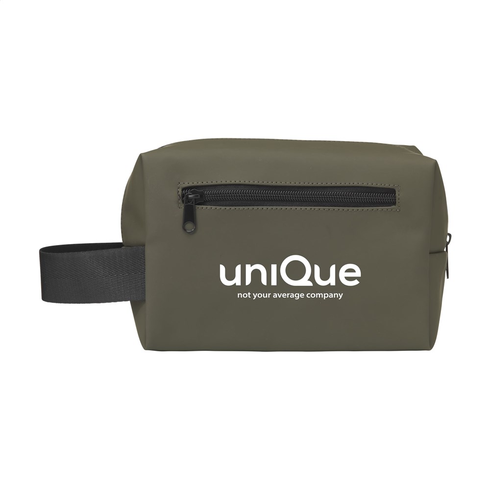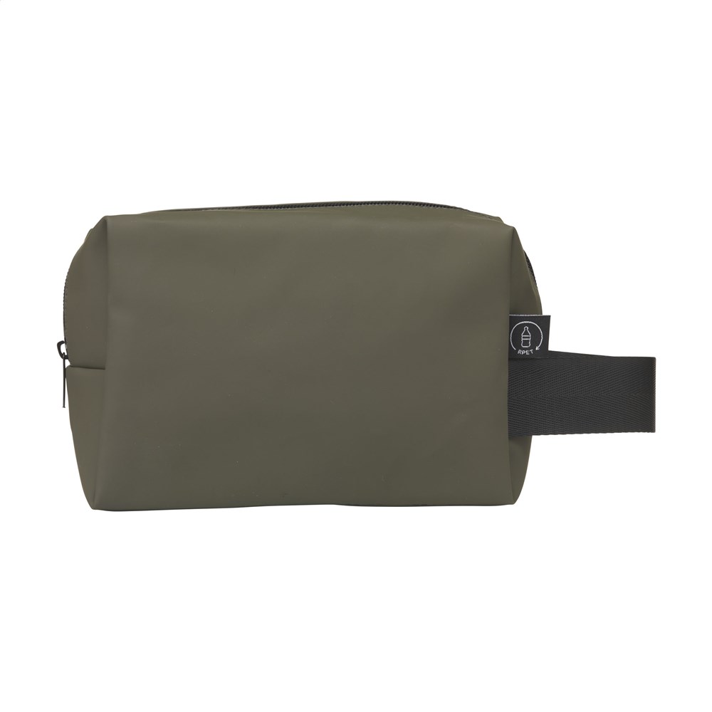 Praktische en stevige toilettas voor het opbergen van persoonlijke verzorgingsaccessoires. Gemaakt van waterafstotend PU, 7% gerecycled PU en 32% gerecycled polyester. Deze toilettas kan tegen een stootje en is bovendien gemakkelijk schoon te houden. Ideaal voor gebruik in badkamers en douchruimtes. De binnenzijde is afgewerkt met een 210D RPET polyester voering. Het royale ritsvak is voorzien van elastische banden en een handig zijvak, waardoor het eenvoudig is om al je benodigdheden georganiseerd op te bergen. Daarnaast heeft de toilettas een extra ritsvak aan de voorzijde en een handige draaglus. Een stoere allrounder voor dagelijks gebruik. RCS-gecertificeerd. Totaal gerecycled materiaal: 39%.