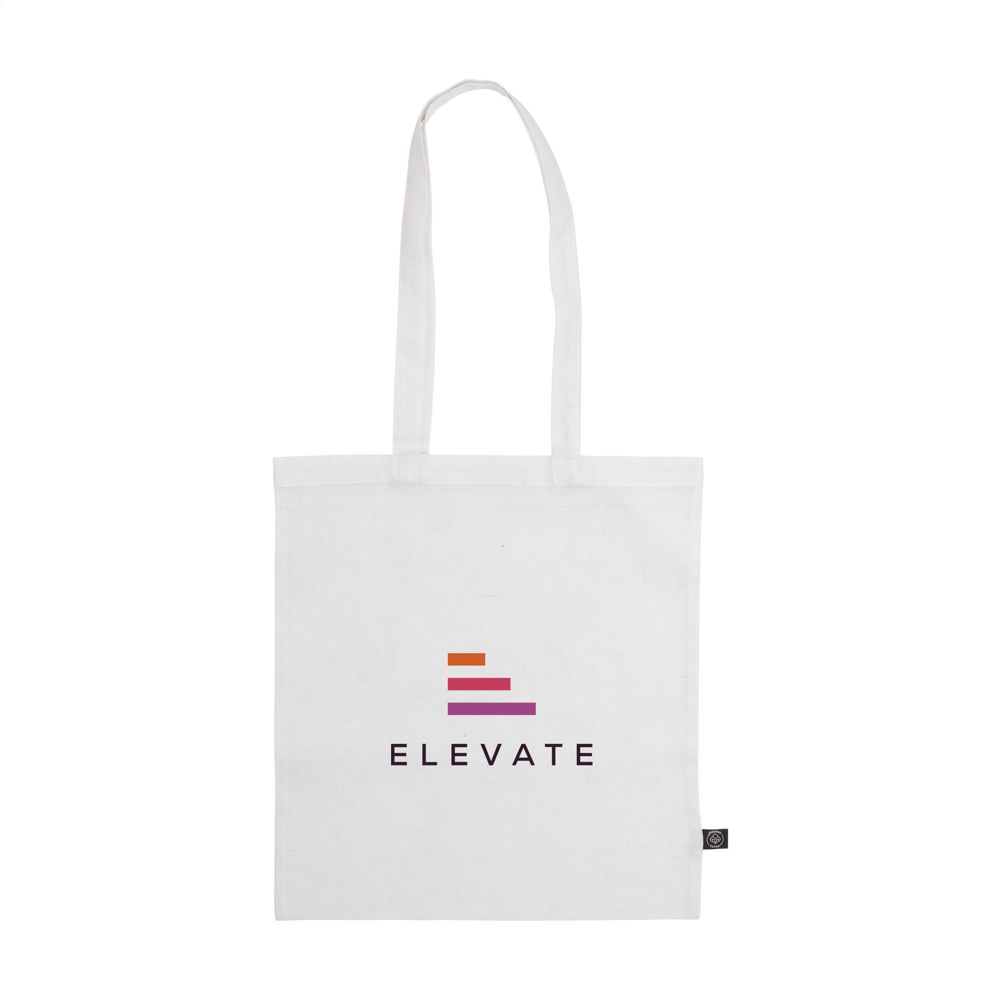 inkeltas met lange hengsels van 80% gerecycled katoen en 20% gerecycled polyester (150 g/m²). GRS-gecertificeerd. Totaal gerecycled materiaal: 100%. Inhoud ca. 8 liter.