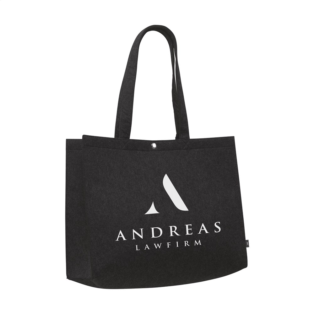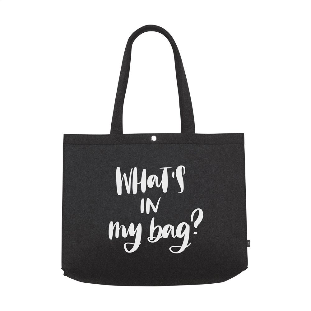 Stoere, royale Shopper van RPET vilt. Deze tas biedt enorm veel ruimte en heeft lange hengsels en...meer