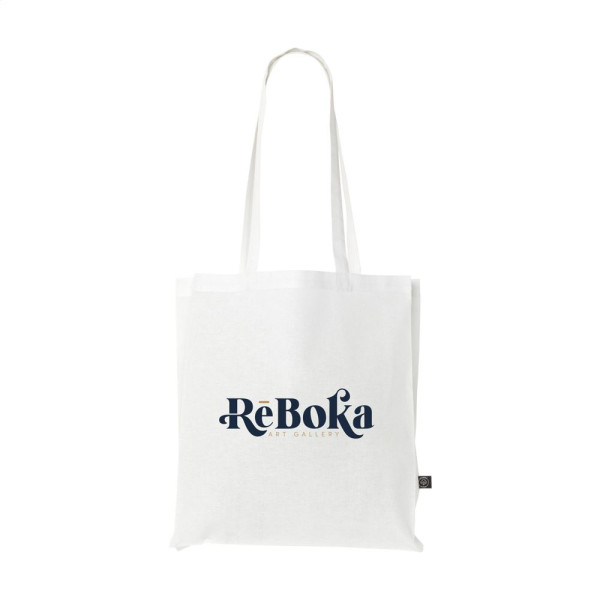 Stevige winkeltas met lange hengsels, van 80% gerecycled katoen en 20% gerecycled polyester (150 g/m²). GRS-gecertificeerd. Totaal gerecycled materiaal: 100%. Inhoud ca. 12 liter.