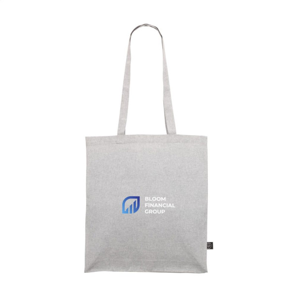 Stevige winkeltas met lange hengsels, van 80% gerecycled katoen en 20% gerecycled polyester (150 g/m²). GRS-gecertificeerd. Totaal gerecycled materiaal: 100%. Inhoud ca. 12 liter.