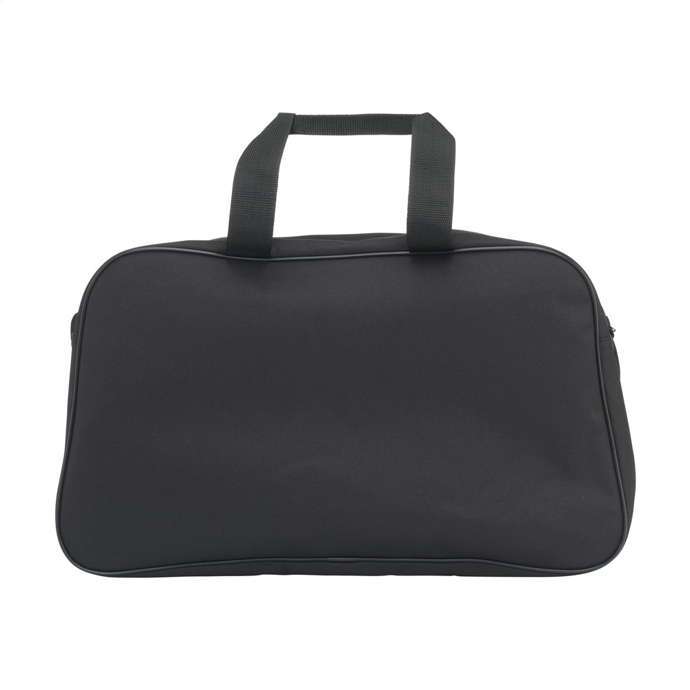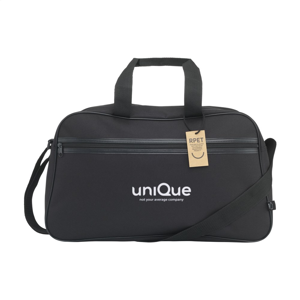 Ruime sport-/reistas van stevig 600D RPET polyester. Met veel opbergruimte, een ritsvak aan de voorzijde, 2 handgrepen en verstelbare schouderriemen. GRS-gecertificeerd. Totaal gerecycled materiaal: 98%. Inhoud ca. 35 liter.