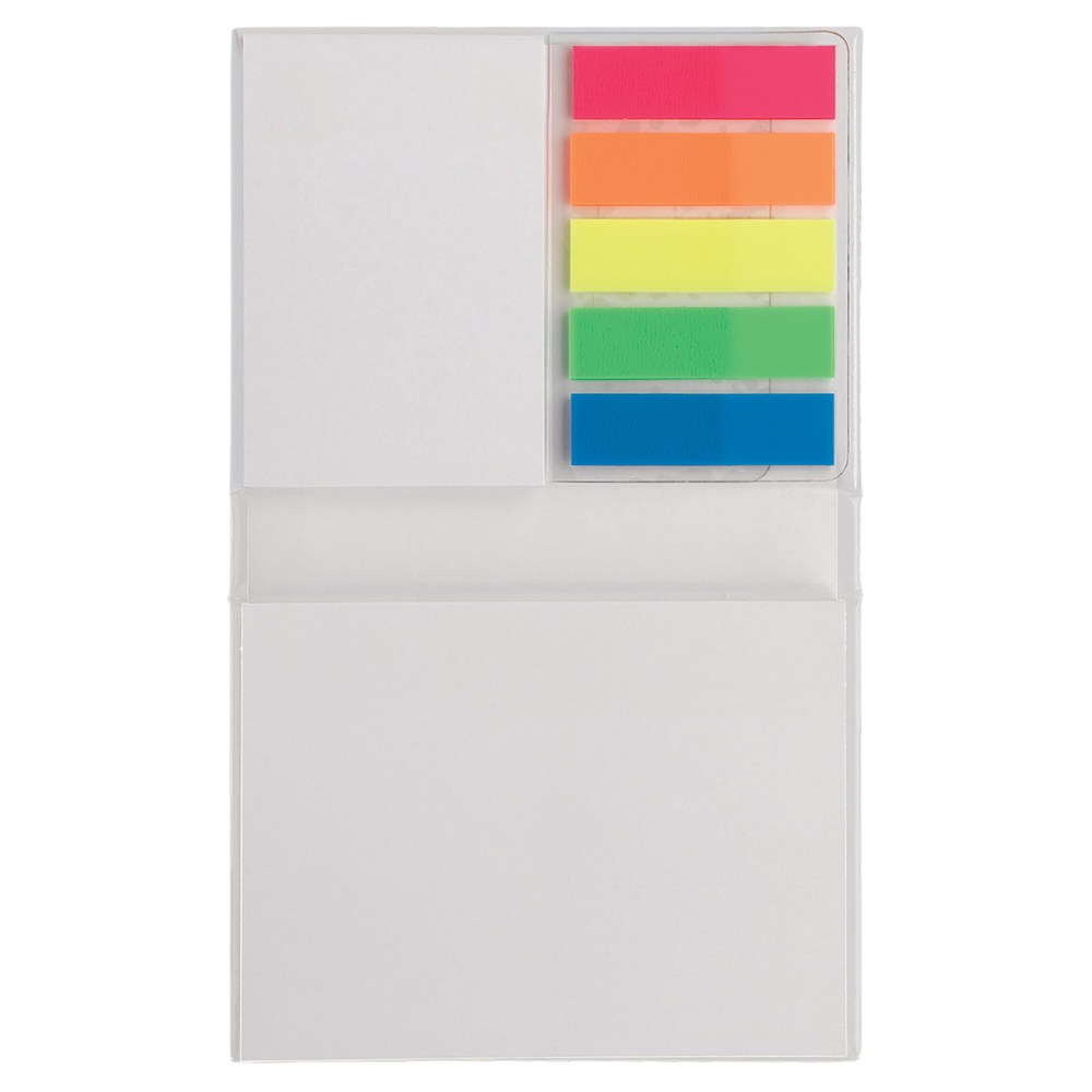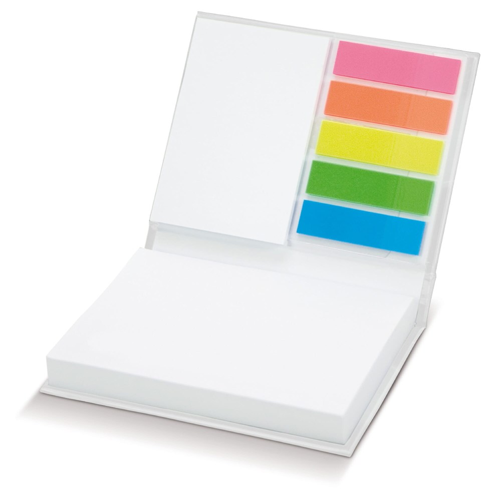Notitieboek met 100 zelfklevende grote memoblaadjes (100x75mm) en 25 kleine zelfklevende memoblaadjes (50x75mm) en vijf rijtjes met 25 gekleurde page markers.