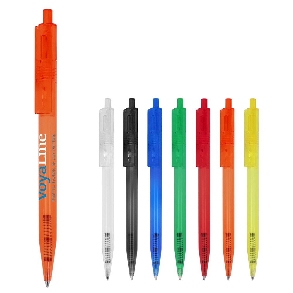 Toppoint design balpen, geproduceerd in Duitsland. Deze pen bevat een blauwschrijvende X20 vulling voor 2,5km schrijfplezier en heeft een transparante finish.