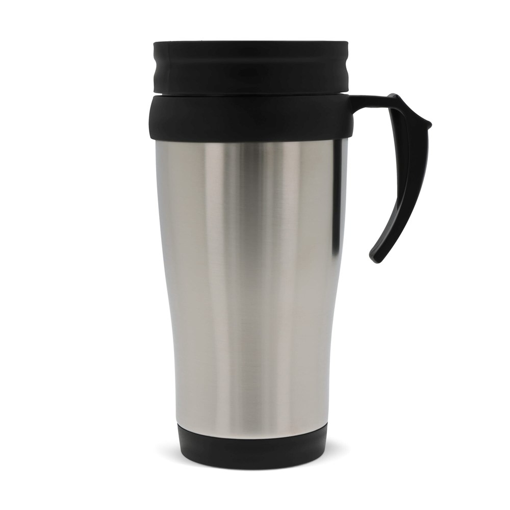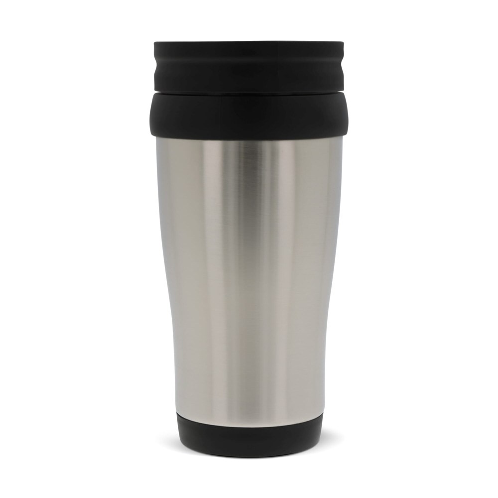 Koffiebeker geschikt voor warme dranken. Metaal van buiten en kunststof van binnen. Wordt in geschenkverpakking geleverd.