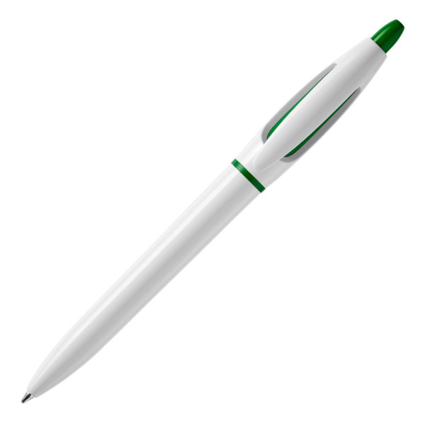 Hardcolour balpen S! met witte barrel en clip. De drukker en ring zijn gekleurd. Inclusief een X20 vulling met blauw schrijvende inkt. De pen bevat een drukmechaniek en is gemaakt van ABS kunststof. Geproduceerd in Europa. Kleur combinaties voor deze pen zijn mogelijk vanaf 5.000 stuks.