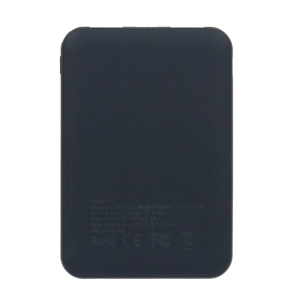 Vergroot je energie onderweg met onze stijlvolle 5.000mAh powerbank Rock. Mode ontmoet duurzaamheid met gerecycled ABS materiaal. Blijf opgeladen in stijl terwijl je een eco-bewust statement maakt. Ingang: micro USB & Type-C: 5V/2A (max) USB-uitgang: DC5V/1A & 2.1A (totaal max. 2.1A)