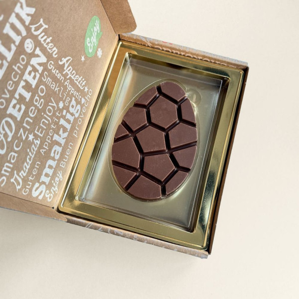 De absolute paas-bestseller; een prachtig chocolade paasei in een luxe verzenddoos (direct per post te versturen), verkrijgbaar in melk, witte of pure chocolade. Verras jouw relaties met deze chocolade paastraktatie. De afmetingen van het paasei zijn 14 x 9,5 cm.