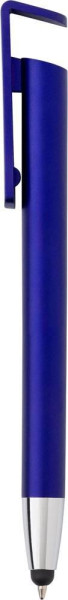 Multifunctionele kunststof balpen, blauwschrijvend, met brede clip te gebruiken als telefoonhouder en met stylus voor uw capacitieve schermen.