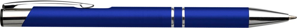 Aluminium balpen, blauwschrijvend, met metalen clip, tip en top. Voorzien van Duitse...meer