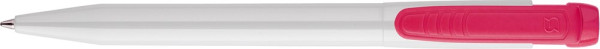 Stilolinea kunststof balpen, blauwschrijvend, met een witte tip en gekleurde brede clip. Inclusief jumbo vulling. Voorzien van Duitse Dokumental-inkt.