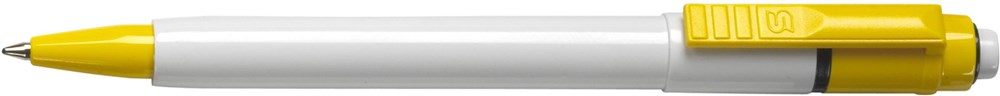 Stilolinea kunststof balpen Baron, blauwschrijvend, met een witte tip en een gekleurde clip. Inclusief jumbo vulling. Voorzien van Duitse Dokumental-inkt.
