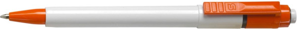 Stilolinea kunststof balpen Baron, blauwschrijvend, met een witte tip en een gekleurde clip. Inclusief jumbo vulling. Voorzien van Duitse Dokumental-inkt.