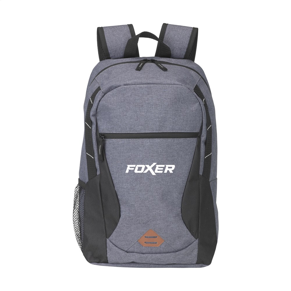 Rugzak van 600D/300D polyester. Met royaal hoofdvak, voorvak met rits, gaasvak, verstelbare, gewatteerde mesh schouderriemen, gewatteerde rugzijde en draaglus. Inhoud ca. 25 liter.