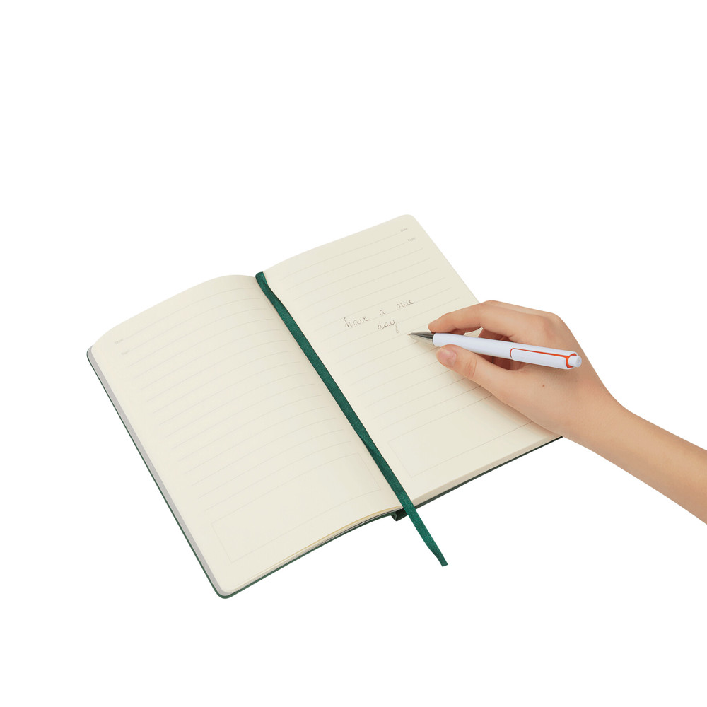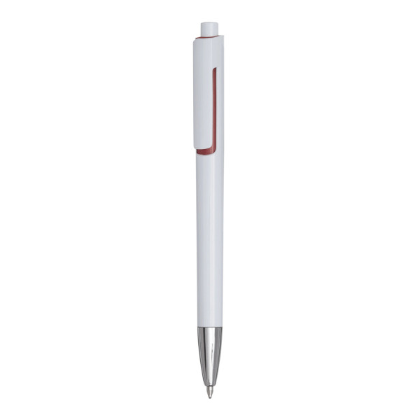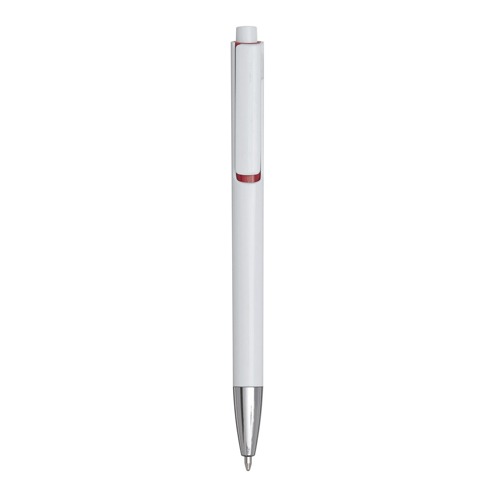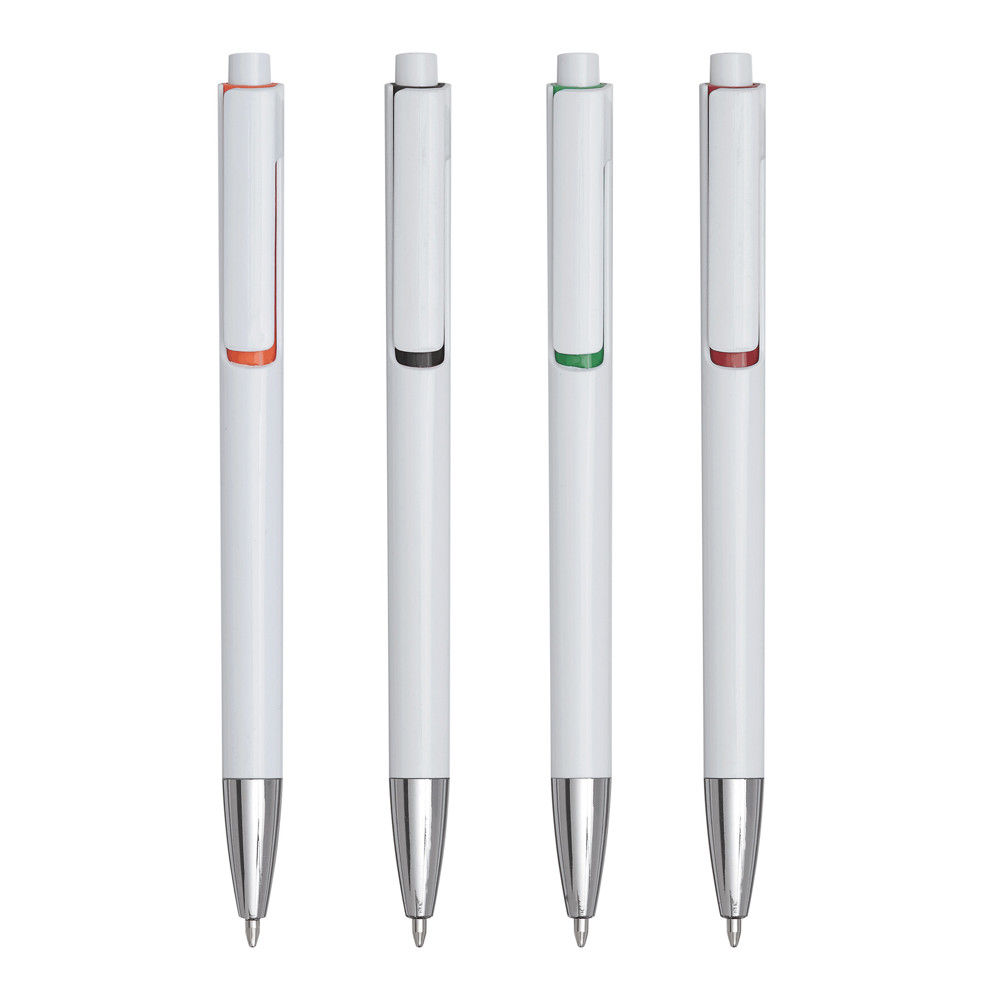 Zwartschrijvende balpen MIAMI met drukknop, gekleurd accent achter de clip. Grote vulling,...meer