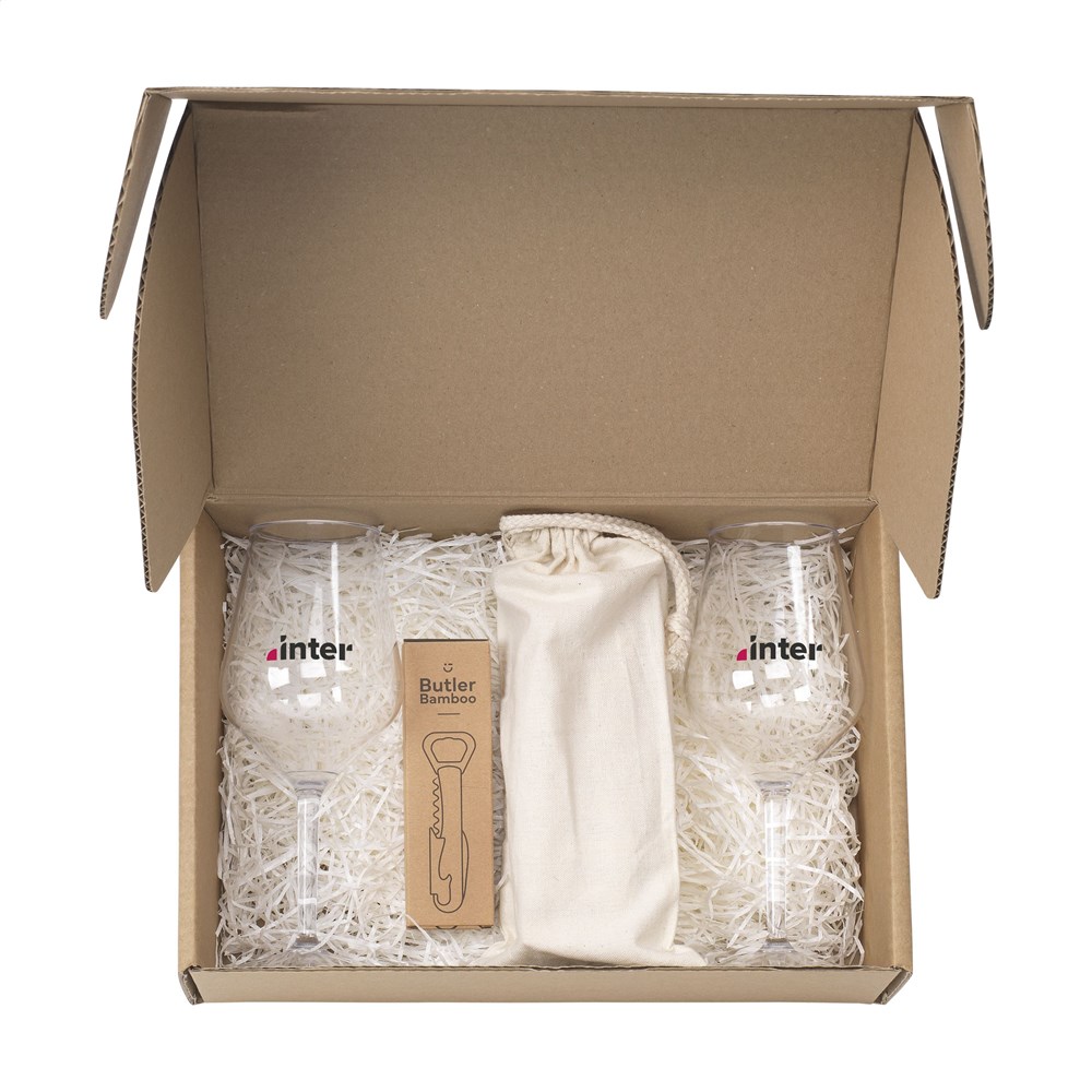 Geschenkset die als attentie aansluit bij meerdere gelegenheden. Wat de aanleiding ook is: het verwelkomen van een nieuwe collega, het geven van een eindejaarsgeschenk, je waardering laten blijken aan medewerkers, of gewoonweg je zakelijke relaties versterken, hiermee laat je een blijvende indruk achter. In deze geschenkset vind je de volgende producten: • 1200 Butler Bamboo • 2 x 4509 HappyGlass Lady Abigail wijglas • 1205 Tower Game. Maak deze set nóg persoonlijker met de opdruk van een naam, quote of logo op de losse producten. De producten worden als set geleverd in een kraft geschenkdoos.