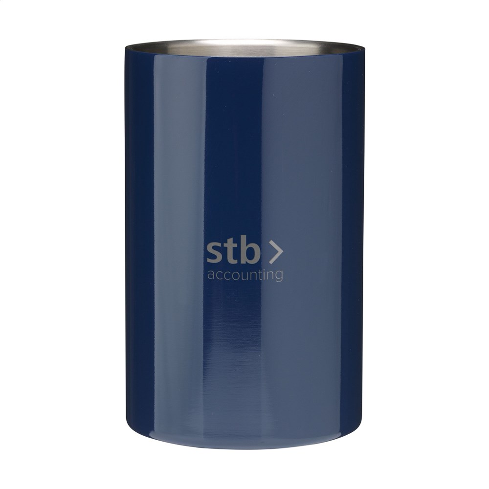 Dubbelwandige wijnkoeler van gerecycled RVS. Deze strak vormgegeven koeler houdt een fles wijn of...meer