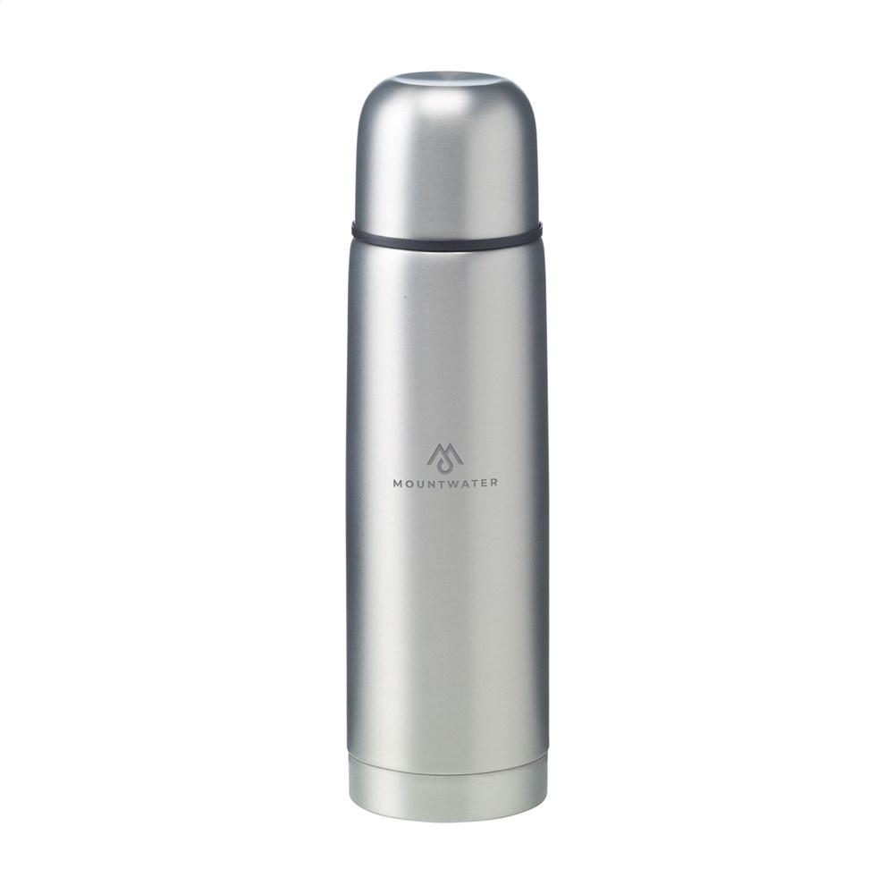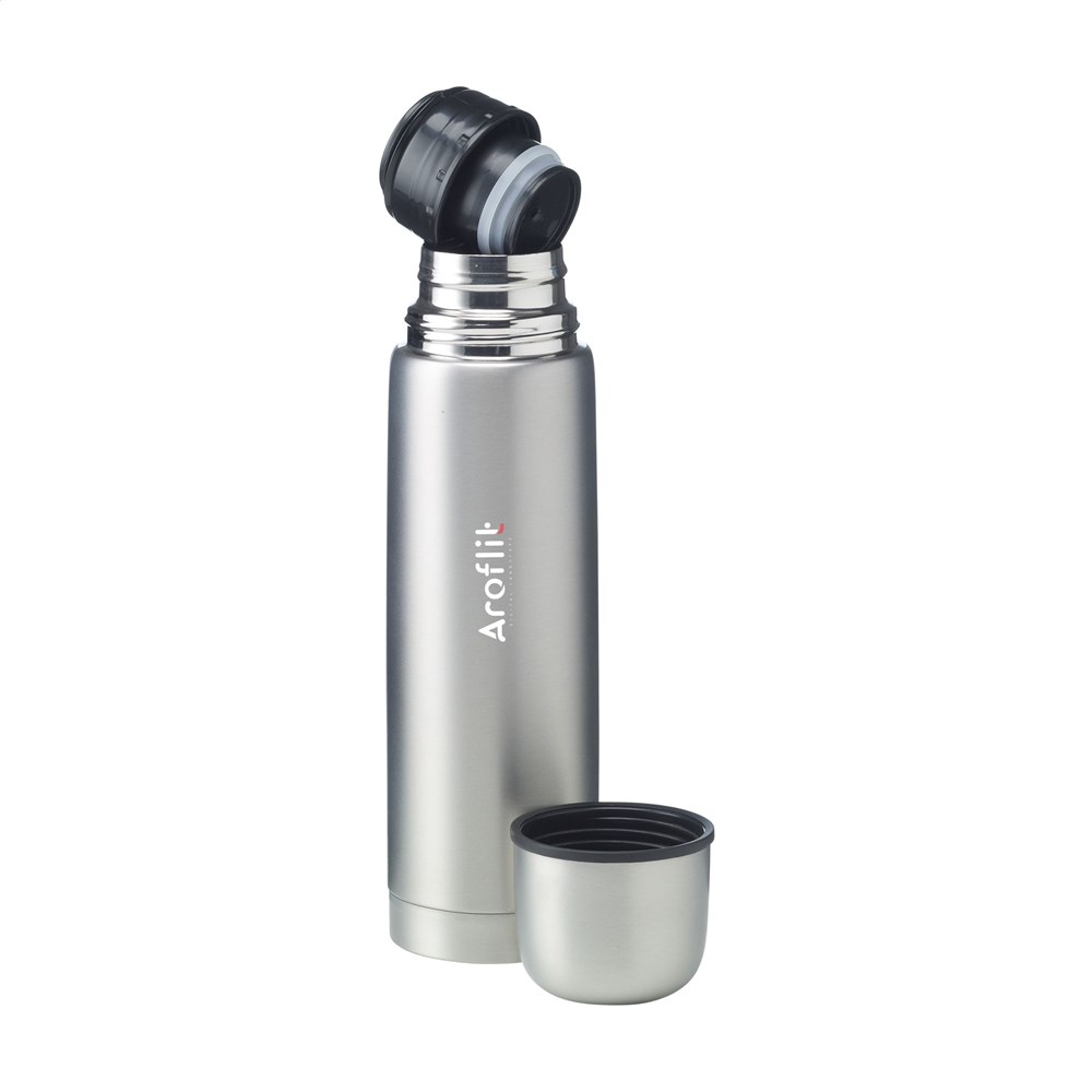 Dubbelwandige, vacuüm geïsoleerde thermosfles van gerecyled RVS. Met schroefdop/drinkbeker en...meer
