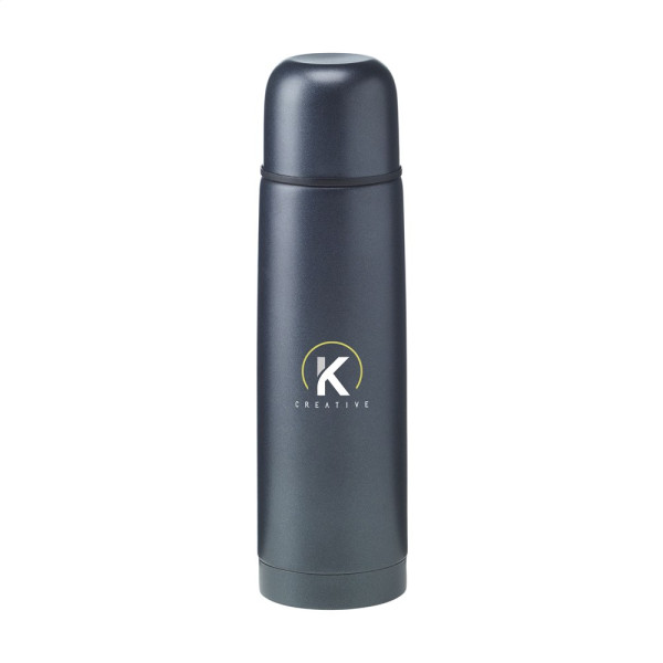 Dubbelwandige, vacuüm geïsoleerde thermosfles van gerecyled RVS. Met schroefdop/drinkbeker en...meer