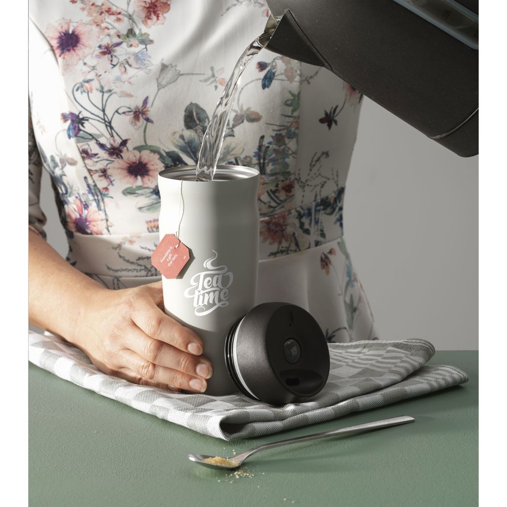 Dubbelwandige, lekvrije thermosbeker van gerecycled RVS, met schroefdop. Met slechts één druk op...meer