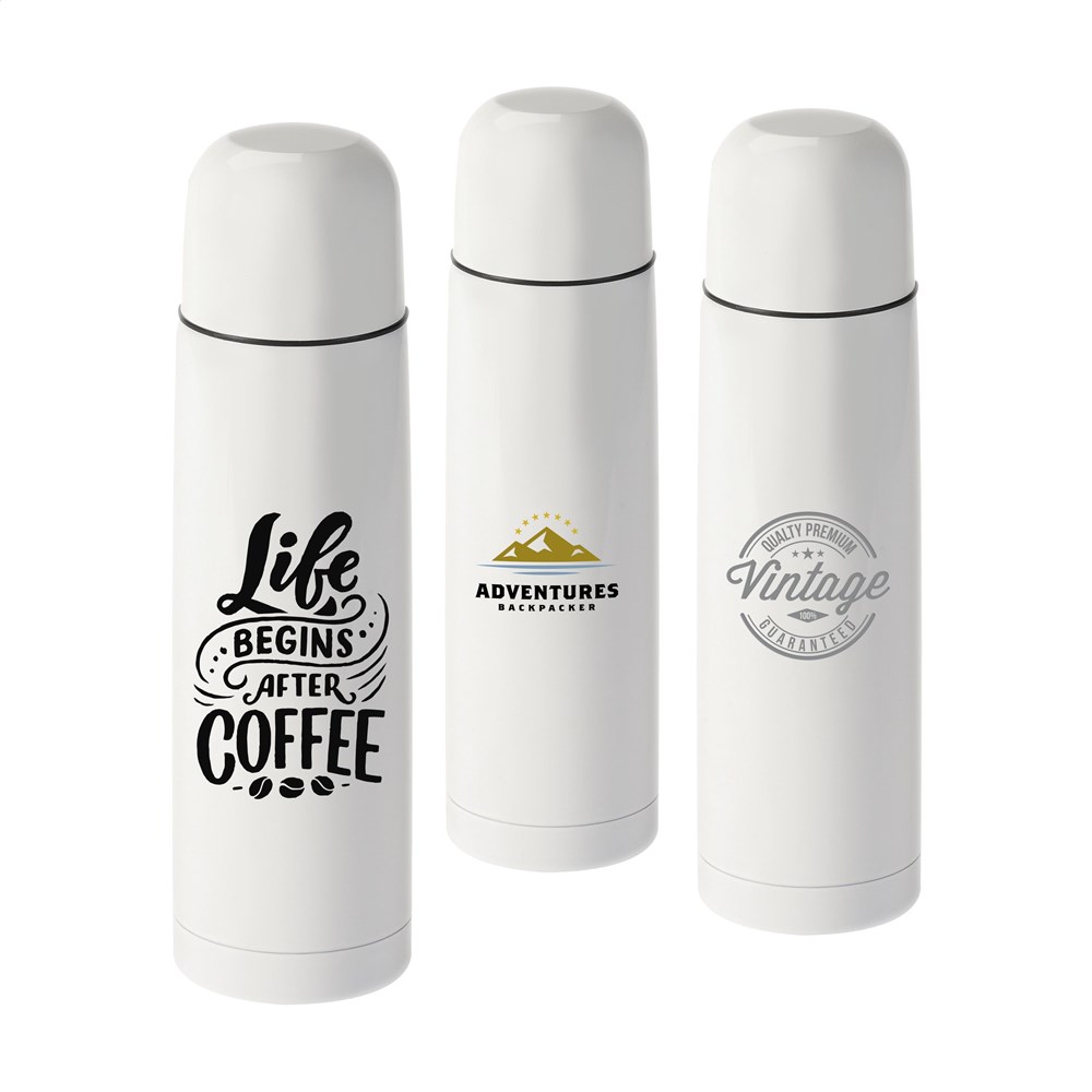 Dubbelwandige, vacuüm geïsoleerde thermosfles van gerecycled RVS. Met schroefdop/drinkbeker en...meer