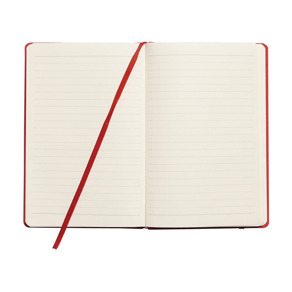 Notitieboek in A5-formaat. Met ca. 96 vel/192 pagina's crèmekleurig, gelinieerd FSC Mix gecertificeerd papier (80 g/m²). Met gebonden rug, harde kaft, sluitelastiek en zijden leeslint.
