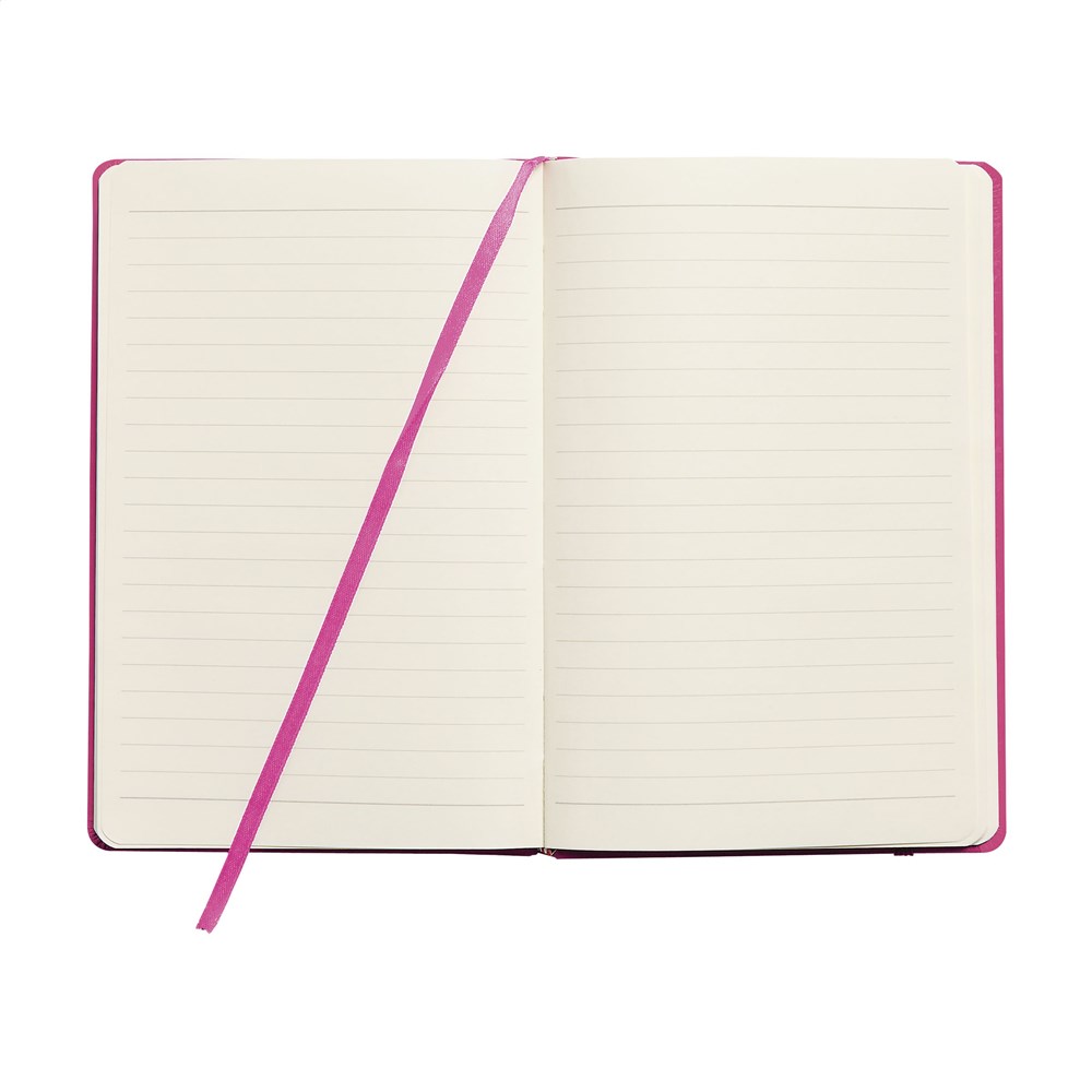 Notitieboek in A5-formaat. Met ca. 96 vel/192 pagina's crèmekleurig, gelinieerd FSC Mix gecertificeerd papier (80 g/m²). Met gebonden rug, harde kaft, sluitelastiek en zijden leeslint.