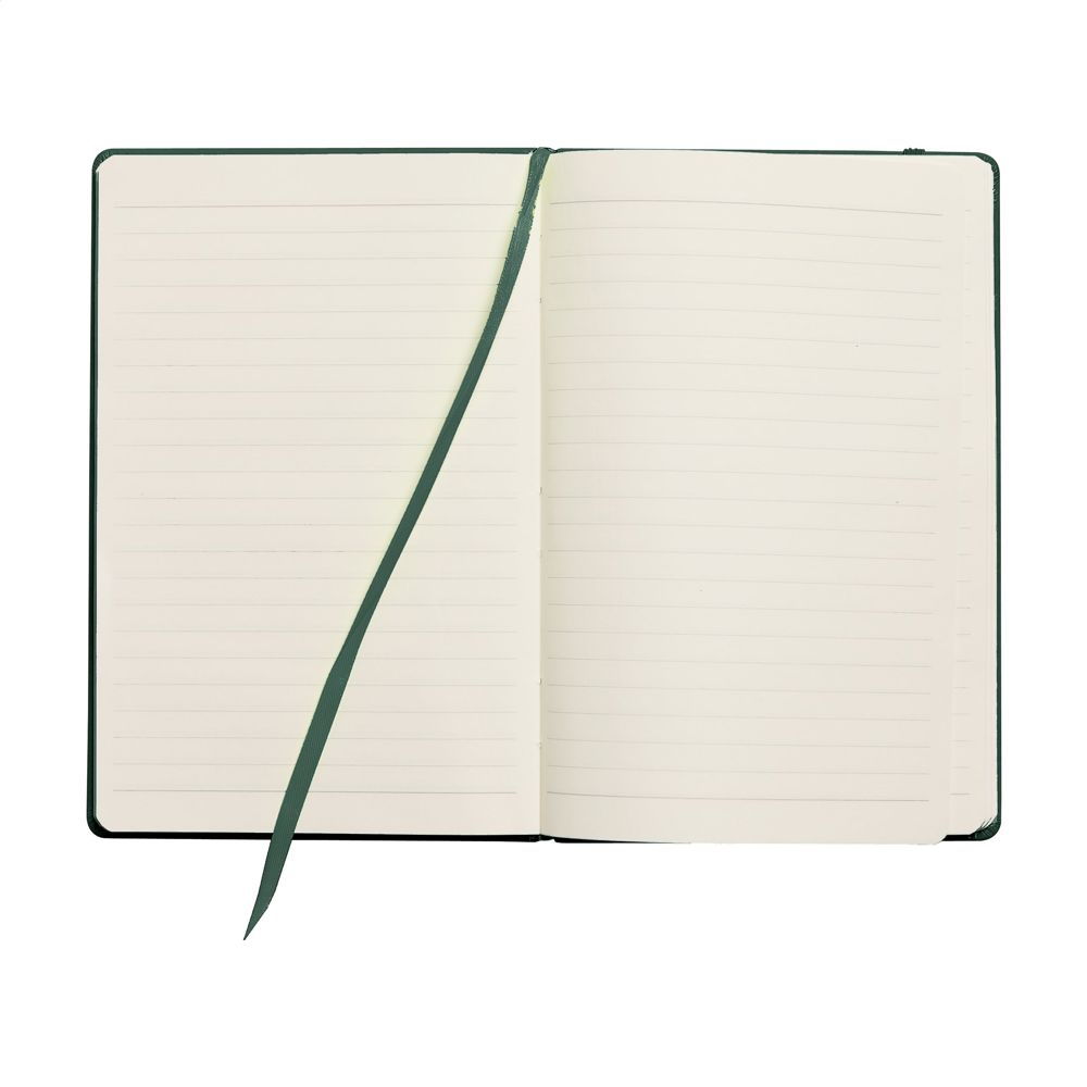 Notitieboek in A5-formaat. Met ca. 96 vel/192 pagina's crèmekleurig, gelinieerd FSC Mix gecertificeerd papier (80 g/m²). Met gebonden rug, harde kaft, sluitelastiek en zijden leeslint.