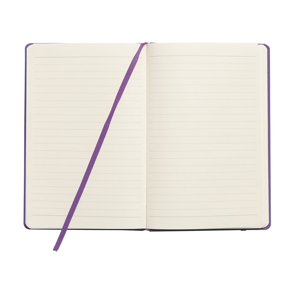 Notitieboek in A5-formaat. Met ca. 96 vel/192 pagina's crèmekleurig, gelinieerd FSC Mix gecertificeerd papier (80 g/m²). Met gebonden rug, harde kaft, sluitelastiek en zijden leeslint.
