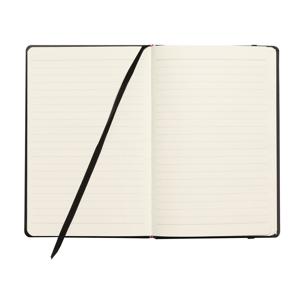 Notitieboek in A5-formaat. Met ca. 96 vel/192 pagina's crèmekleurig, gelinieerd FSC Mix gecertificeerd papier (80 g/m²). Met gebonden rug, harde kaft, sluitelastiek en zijden leeslint.