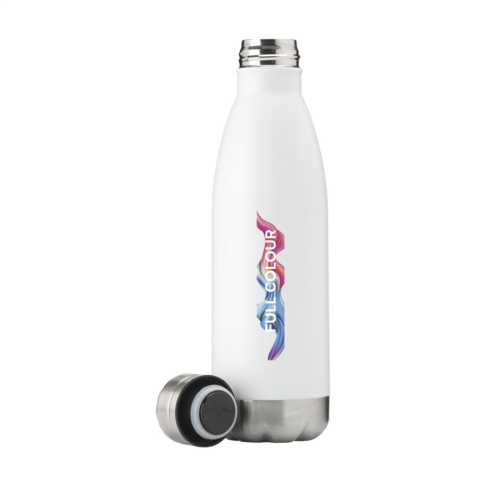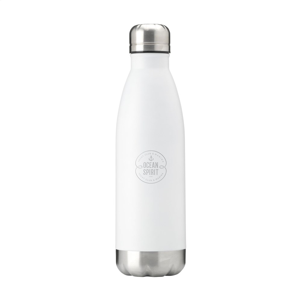 Dubbelwandige, vacuüm geïsoleerde, RVS waterfles/thermosfles. Met lekvrije schroefdop. Uitgevoerd in metallic of met mooie toplaag in matte finish (alleen de zwarte en de witte). Geschikt voor het op temperatuur houden van koud of warm water. Niet vaatwasserbestendig. Inhoud 500 ml. Per stuk verpakt.